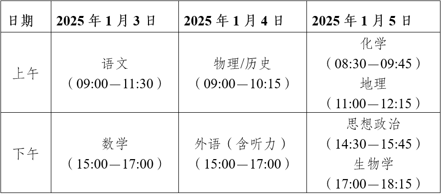 为帮助广大考生熟悉新高考考试模式,我省定于2025年1月3-5日进行2025年普通高校招生考试适应性测试(以下简称适应性测试),现就有关事项提示如下: