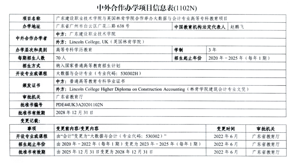 与英国林肯学院合作开办的“大数据与会计(建筑企业会计)中英国际班”办学地点为我校广州校区,旨在为外资企业、中资海外企业培养涉外管理人才,特别适用于我国在海外承接工程的建筑类企业。