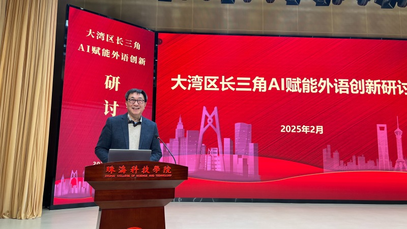 2025年2月6日至10日,“大湾区长三角AI赋能外语创新研讨会”在澳门大学和珠海科技学院顺利召开。本次研讨会由广东省本科高校大学英语课程教学指导委员会、江苏省高等学校外国语教学研究会、澳门大学人文学院、澳门科技大学国际学院及珠海科技学院外国语学院联合主办,上海外语教育出版社和北京燕兴教育协办。会议旨在打破地域限制,促进大湾区与长三角地区在外语教育创新领域的资源共享与优势互补,搭建外语教学与人工智能技术深度融合的交流平台。我校作为承办方,为会议提供了重要支持。