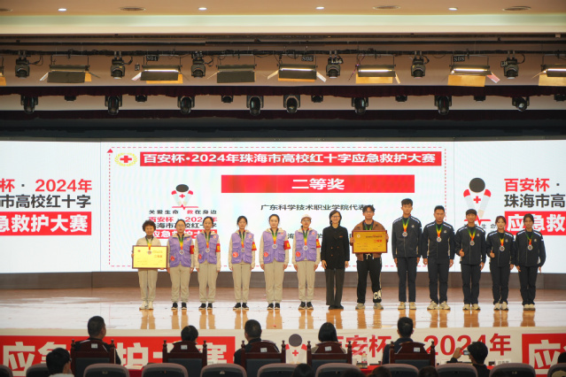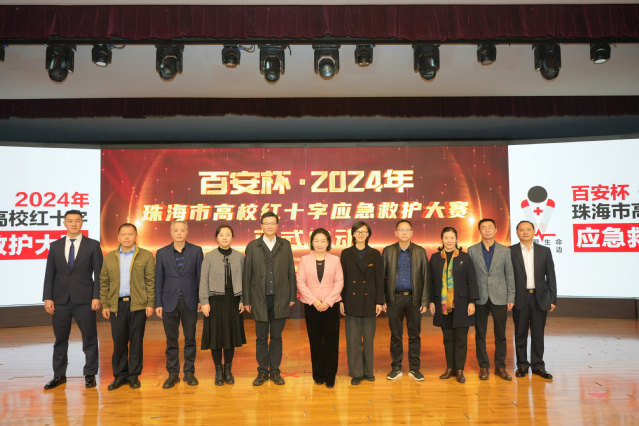 为提升和检验大学生自救互救能力与水平,12月21日,由珠海市红十字会联合珠海市教育局举办的“百安杯·2024年珠海市高校红十字应急救护大赛”在我校雅韵楼音乐厅成功举办。广东省红十字会党组书记、常务副会长林彬,珠海市委常委、副市长晁桂明,澳门特别行政区红十字会中央委员会副主席曹国希,市红十字会党组书记、常务副会长陈志英,市教育局党组成员、副局长李晨芳,市政协科教委副主任吴锡钦,市卫生健康局三级调研员李晓晏,团市委副书记孔军亮,市应急管理局四级调研员李建华,以及我校党委委员、副校长方壮坚,副校长、老年大学校长孙巧耘等领导、嘉宾出席本次大赛。大赛吸引来自全市9所高校,以及澳门红十字会代表队共10支队伍同台竞技。