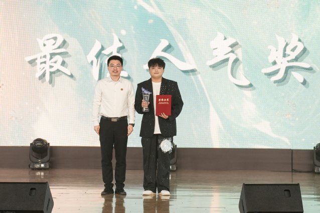 学校团委副书记陈殿藩为最佳人气歌手杨子干颁奖