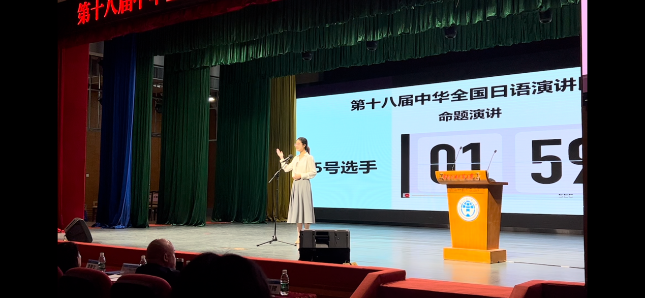 自今年10月接到比赛通知以来,日语专业积极响应,迅速组织校内选拔赛。经过层层选拔,2021级的林静仪同学凭借其出色的日语水平和演讲能力脱颖而出,代表学校参加华南地区初赛,并凭借优异表现顺利晋级决赛。