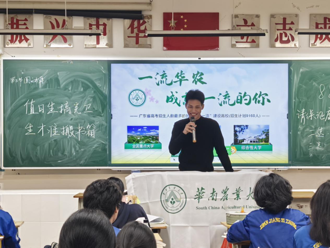 为进一步拓宽招生途径并深化与优质生源高中的合作关系,在2025年寒假期间,来自华南农业大学的湛江市第一中学、湛江市第二中学、湛江市第四中学、湛江市博雅学校、遂溪县第一中学以及廉江市实验中学的寒假招生宣传实践队成员们,满怀热忱地返回各自的母校,开展了一场别开生面的招生宣传活动。此次活动精心策划,旨在全方位、多角度地向湛江地区的高中生展示华南农业大学的独特魅力,涵盖办学理念、专业设置以及校园生活等多个维度,让每一位参与者都能对华南农业大学产生更加深刻而全面的认识。通过此次宣传,我们期待能够激发更多优秀学子的兴趣与向往,为华南农业大学吸引并汇聚更多潜力无限的未来之星。