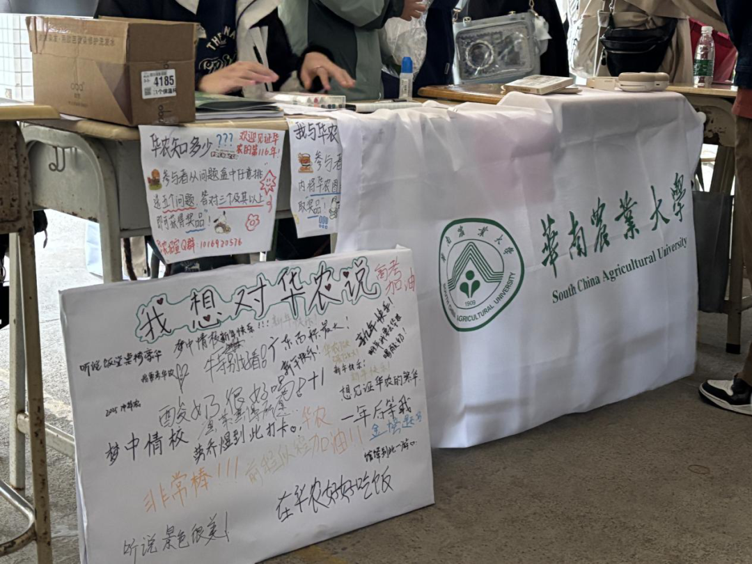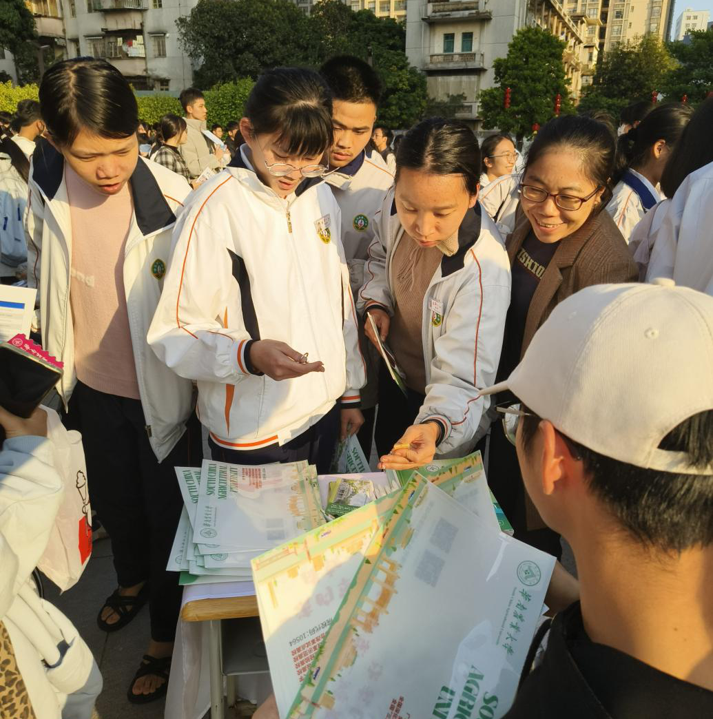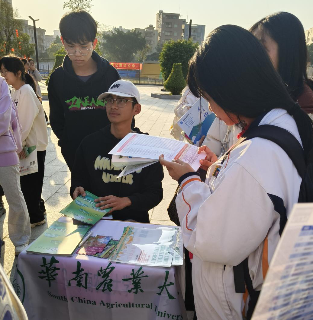 寒招现场,团队成员详细地向高三学子介绍了华南农业大学的专业特色、师资力量以及人才培养方案,并且向在场的学生派发了华农的招生宣传手册和文创产品。此次招生宣传,进一步加深了高中学子对华农的了解和认识,同学们纷纷表达了报考华南农业大学的意愿。