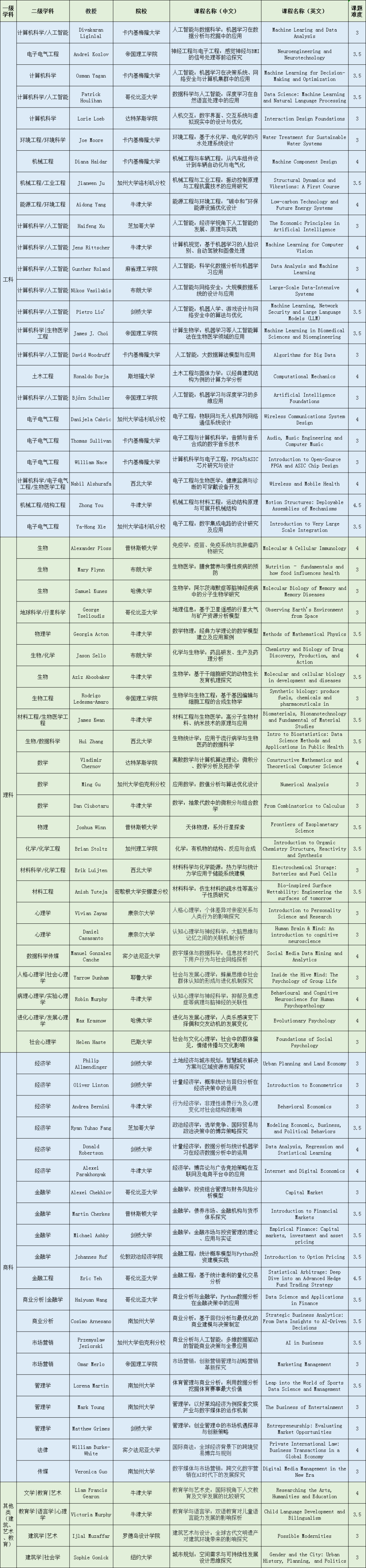 附:2025春季国际化拔尖创新人才培养计划课程列表