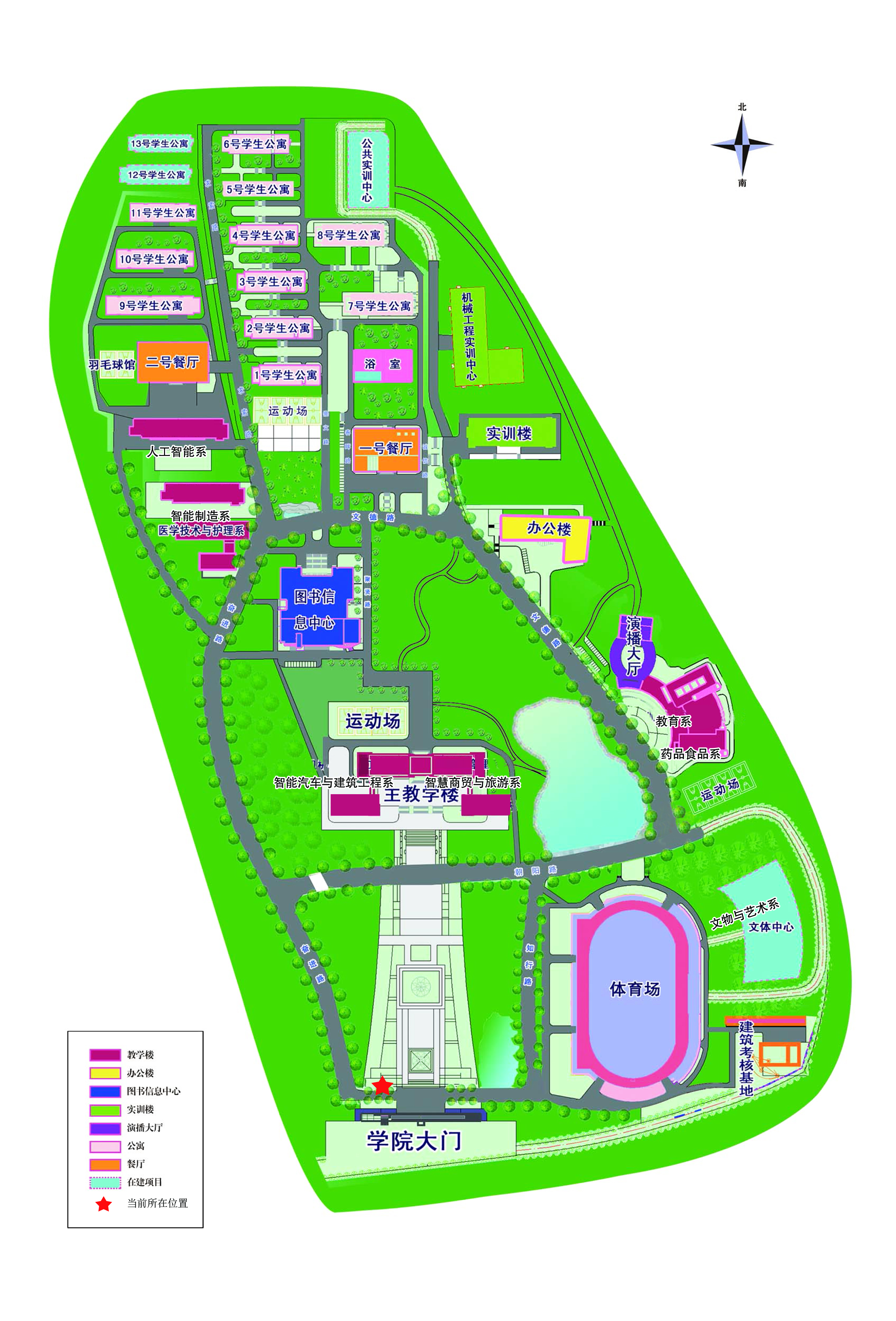 2、考场位置:考场位于莱芜职业技术学院,具体位置见准考证,学校平面图如下。