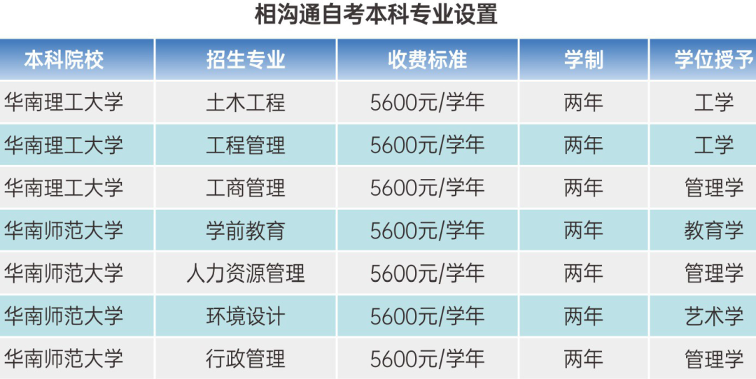 创新精英班“专本同读”,相沟通自考本科学校联合华南理工大学、华南师范大学举办的相沟通自考本科班。学生在完成全日制大专学习的同时,通过自学考试本科专业计划所规定的全部课程学习,考核成绩合格者,获得高等教育自学考试委员会联合主考院校颁发本科毕业证书。达到学位要求的同学可由主考高校(华南理工大学或华南师范大学)授予学士学位。