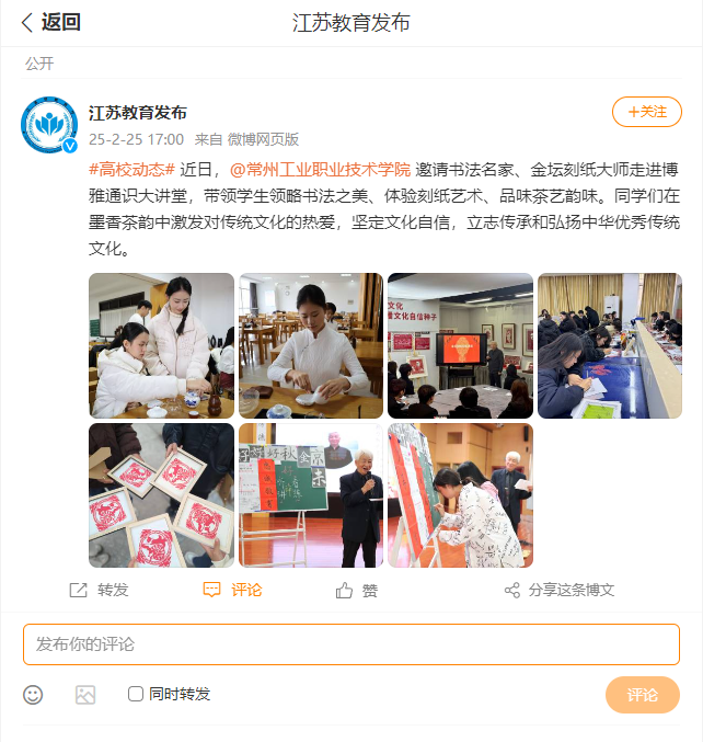 江苏教育发布:#高校动态#常州工业职业技术学院邀请名家走进博雅通识大讲堂