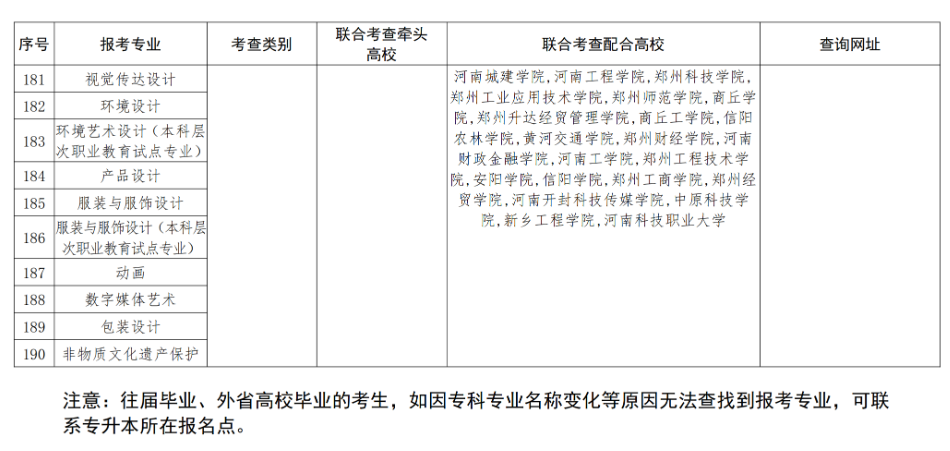 2025年河南省退役大学生士兵专升本联合考查高校及报考专业考查类别表
