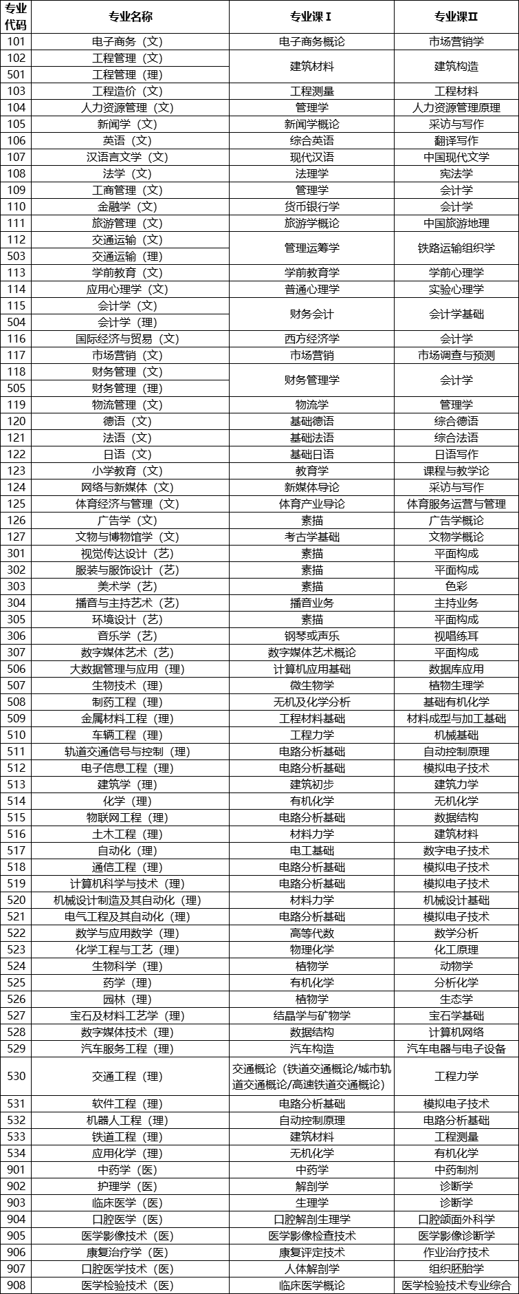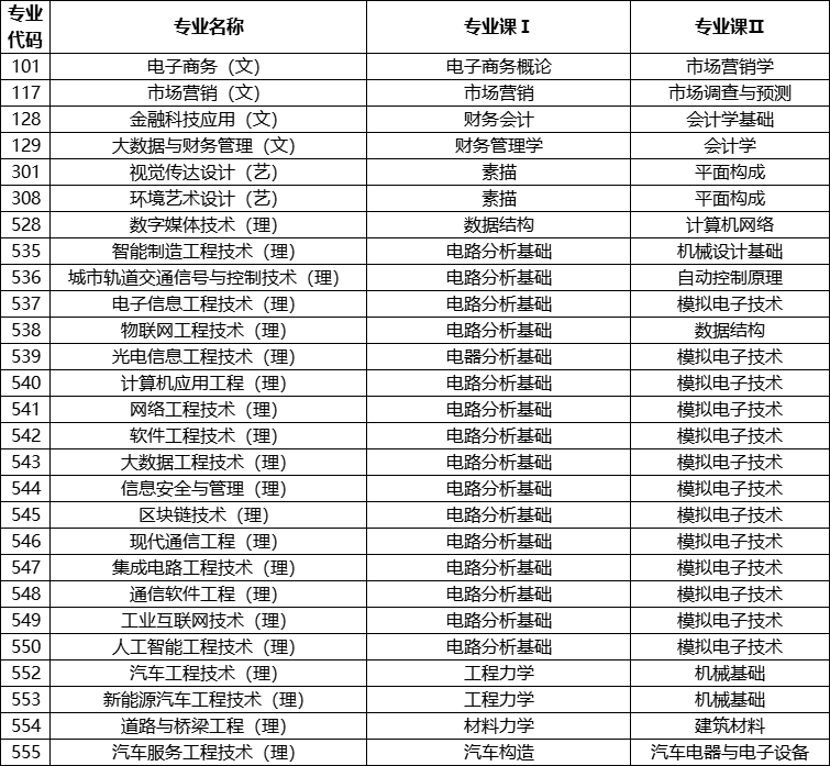 普通高等学校专升本招生专业课考核科目(职教本科)