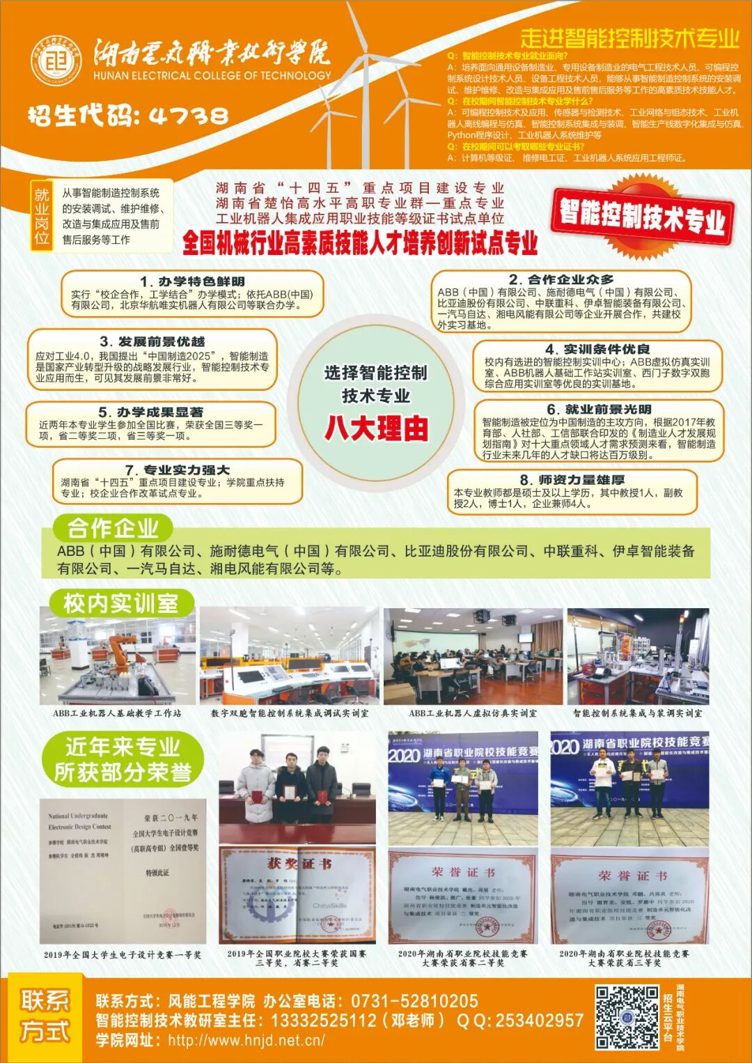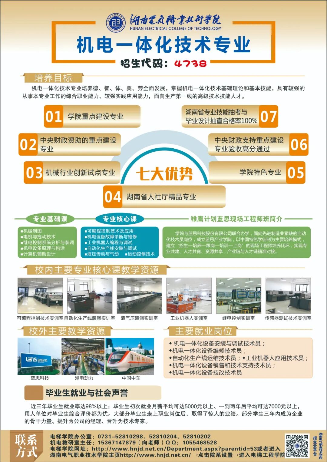 湖南电气职业技术学院是全日制公办高等职业院校,开办高职专业22个,现有学生近11000人,学校现有教职工400余人,具有高级专业技术职务的教师130余人。学院多次荣获国家职业教育教学成果奖,拥有1个国家级示范性职业教育集团,1个国家级教师教学创新团队,1个国家级众创空间、2个省一流特色专业群、2个湖南省高水平专业群,5个省级教学创新团队,1个省级工程研究中心,为全国机械行业骨干高职院校、全国机械行业校企合作与人才培养优秀职业院校、湖南省示范性(骨干)高职院校、湖南省楚怡高水平高职专业群建设计划(A档)建设单位,是教育部“智能制造产业领域现代学徒试点项目”建设单位。