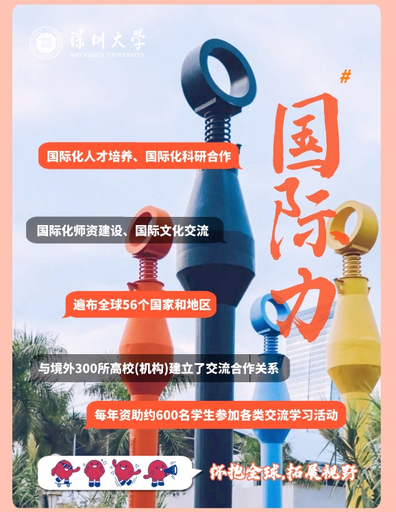 国际化的办学视野让深大与国际接轨,多元的国际交流合作项目,让SZUer有机会走出国门,拓宽国际视野,在全球化的浪潮中锤炼本领。