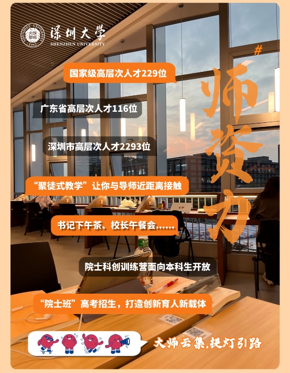 在学术的浩瀚星空中,深大以齐全的学科门类,扎实的学术积累,构筑起一座宏伟的知识殿堂。这里既有热门专业的前沿阵地,让你触摸时代科技与经济发展的脉搏,也有人文艺术的静谧花园,供你在诗词歌赋与艺术创作中找到精神的满足。
