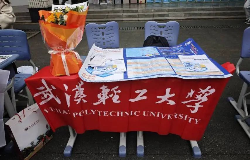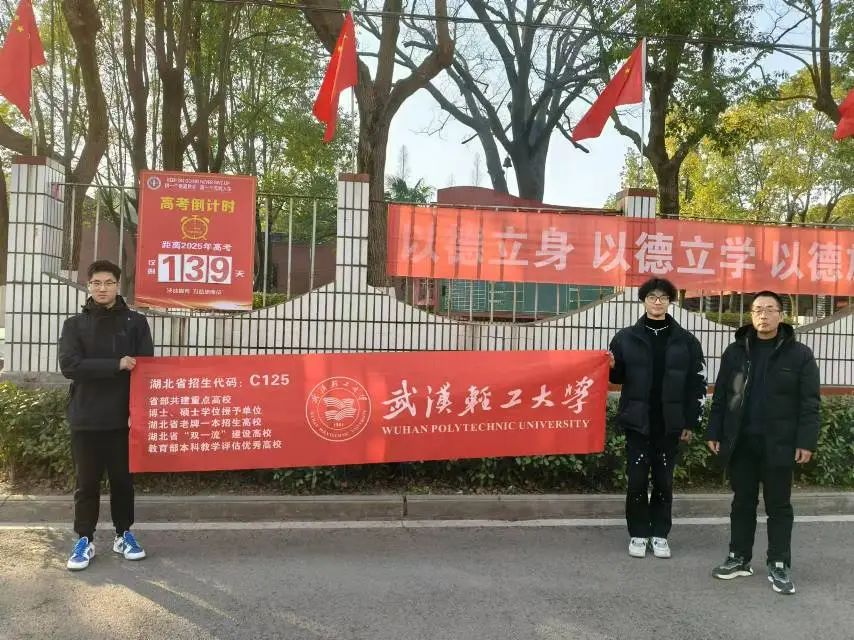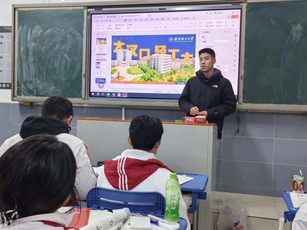 当阳市第二中学食品科学与工程学院的杨濮鸣、张新幻和机械工程学院的汤欣荣在当阳市第二中学开展招生宣传活动。