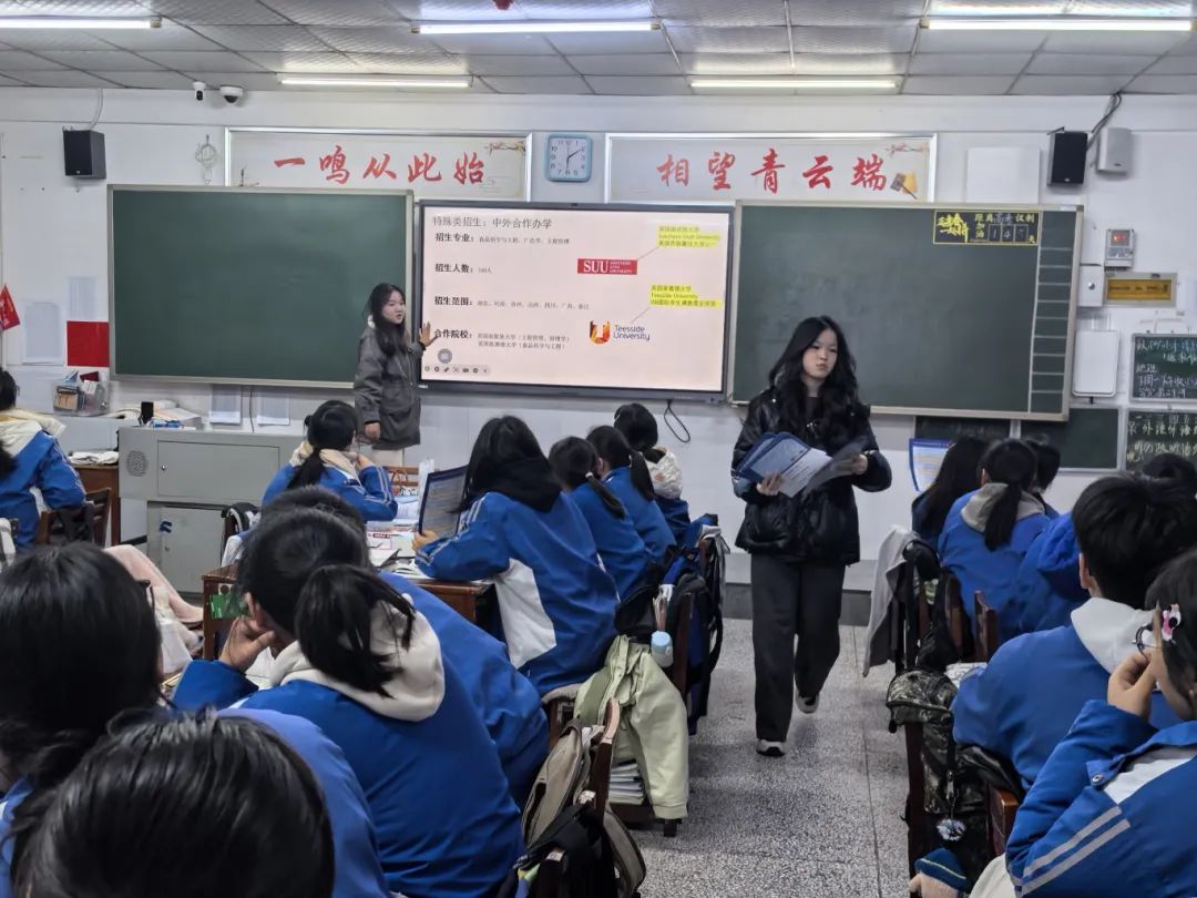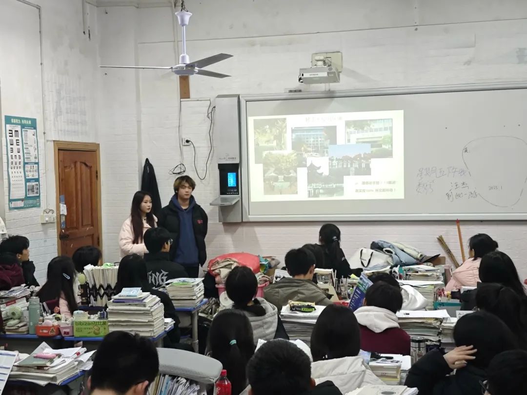 宜昌市人文艺术高中经济学院的吴之楚和管理学院的秦乐瑶在宜昌市人文艺术高中开展招生宣传活动。