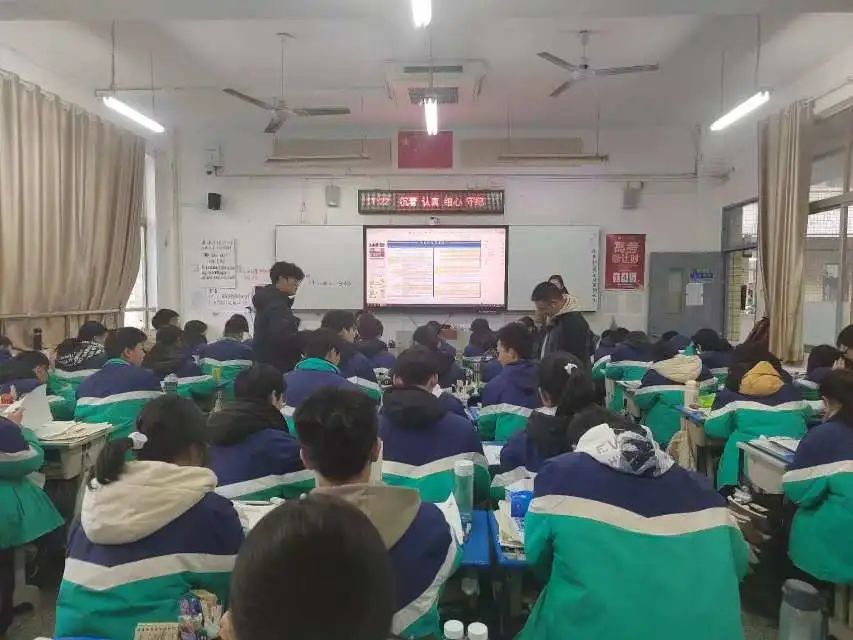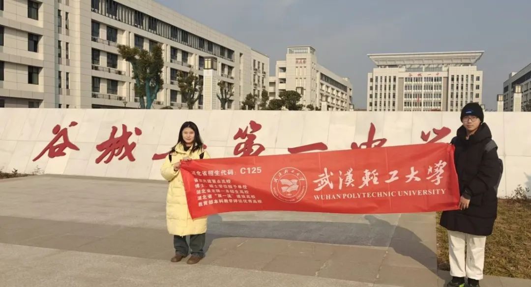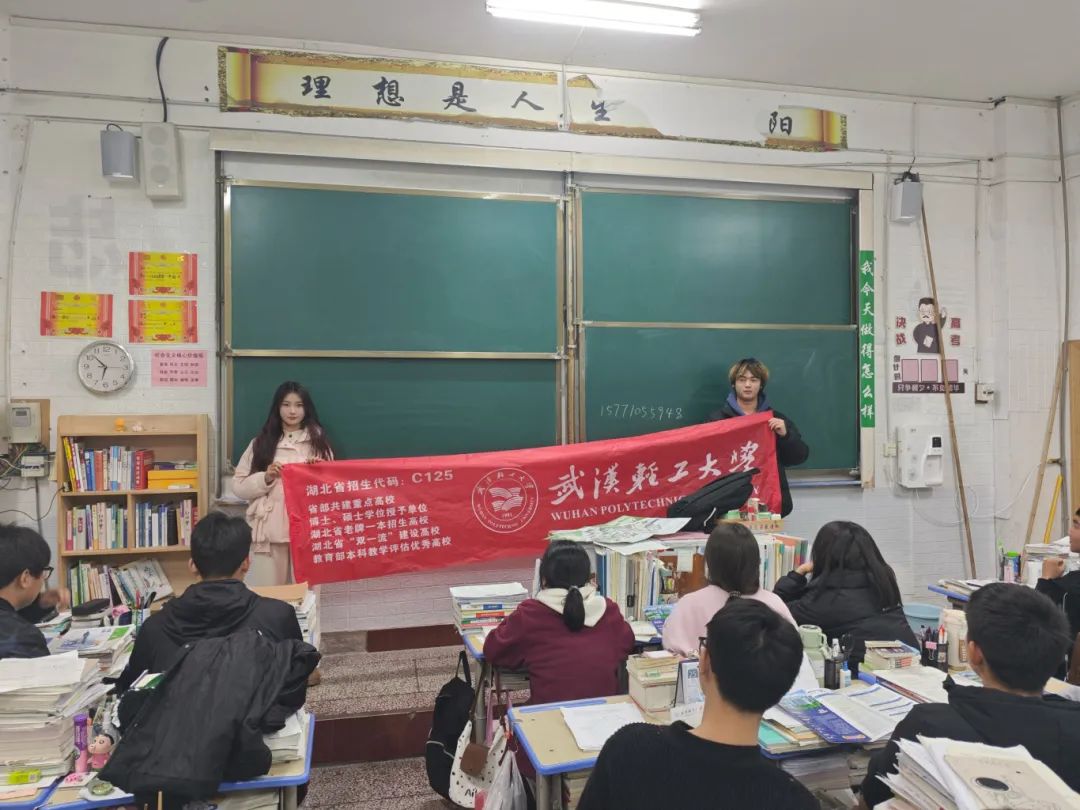 谷城县第一中学食品科学与工程学院的严婧闻、乐锟焜在谷城县第一中学开展招生宣传活动。
