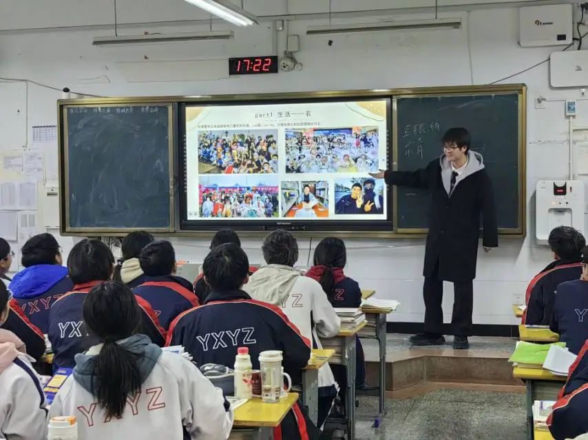 实践内容及感悟1月15号的晚上,我们团队拜访完张老师后,利用晚自习的时间,在张老师所在的班级进行了宣讲活动。团队成员向学生们分发宣传手册,讲解PPT,与台下同学进行友好互动并分发小礼品,获得了学弟学妹们的众多好评,宣讲活动圆满完成。