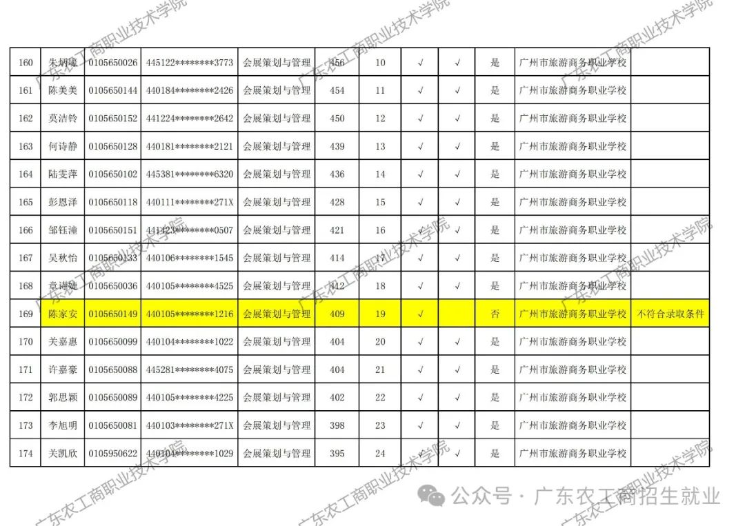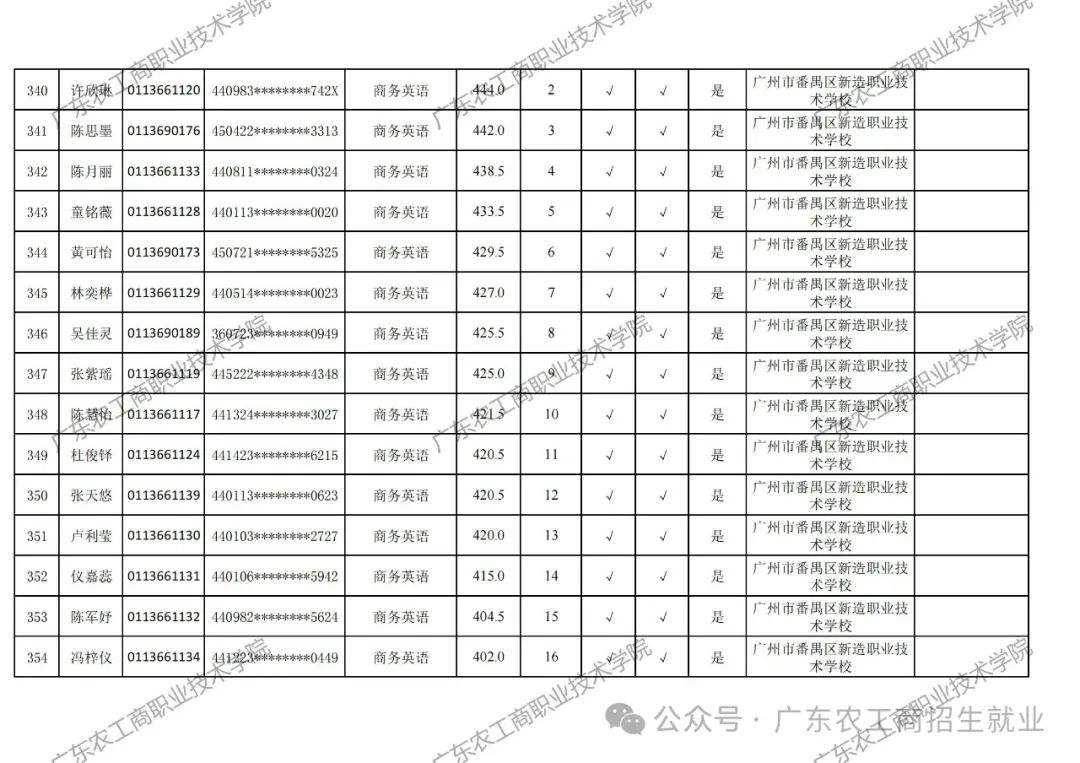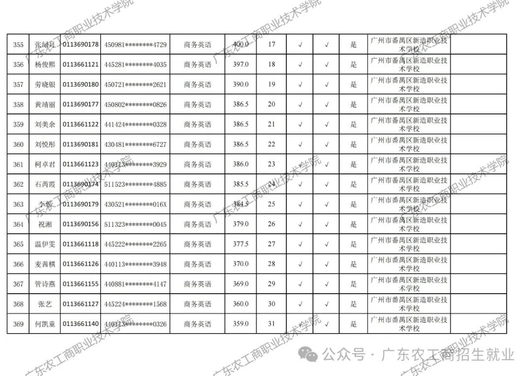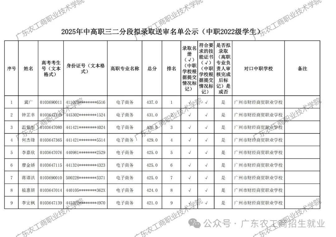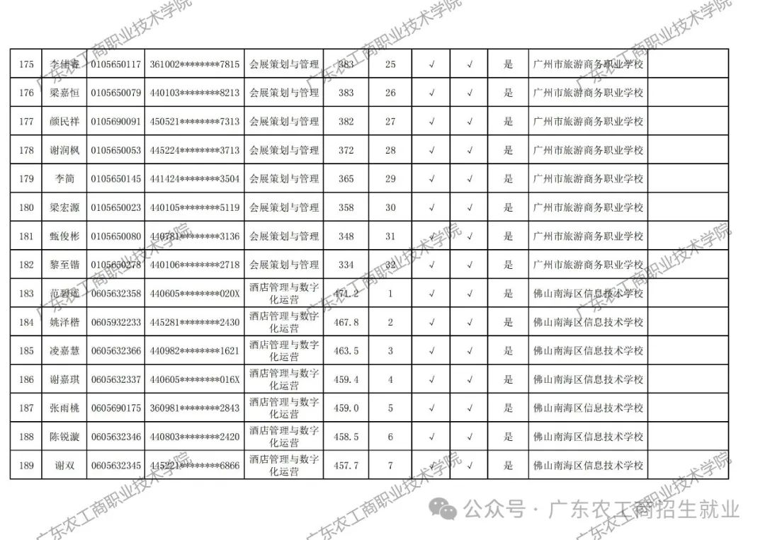 经各中职学校报送材料,各二级学院初审、学校复审,现将复审通过考生名单报送省教育考试院终审,根据相关规定,现将学校复审情况予以公示。公示时间:自2025年2月21日至2025年2月23日止,若有异议请在公示期与我校招生就业处联系,联系电话:020-85230071,联系人:吴老师。