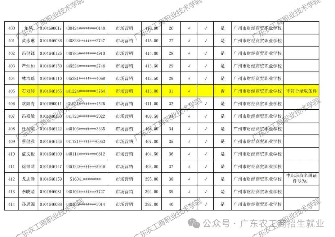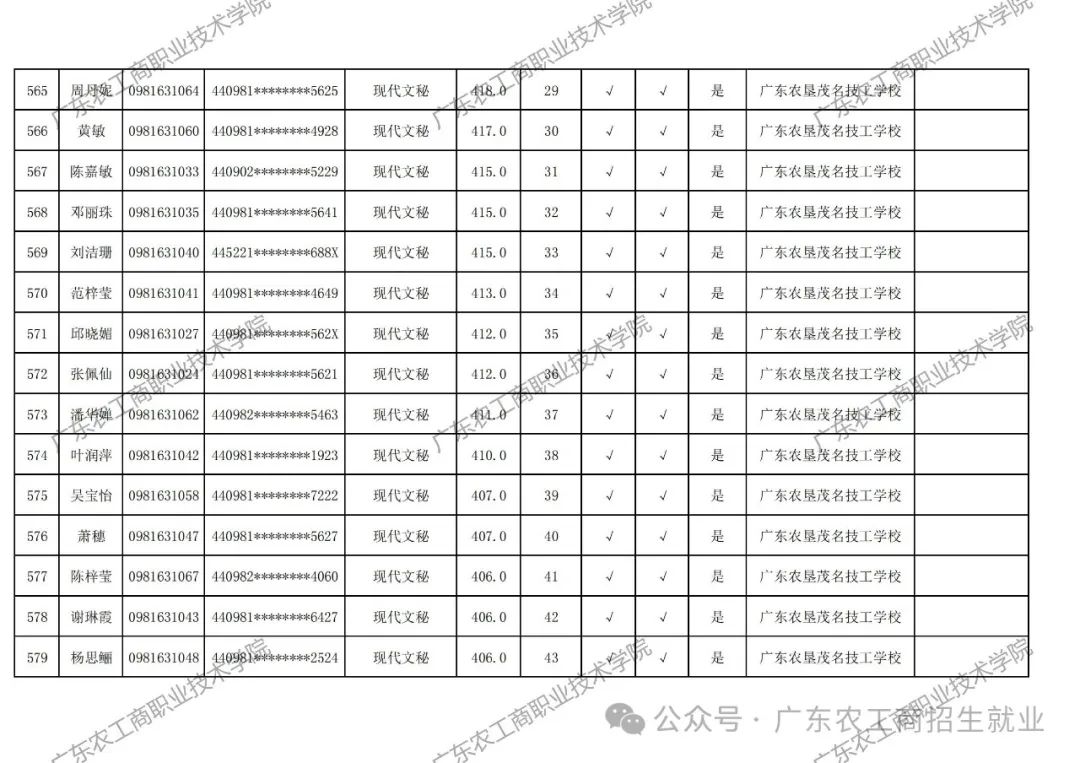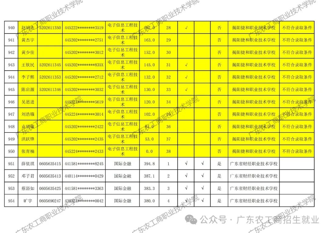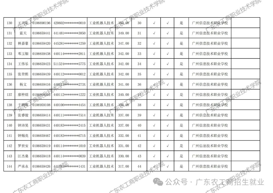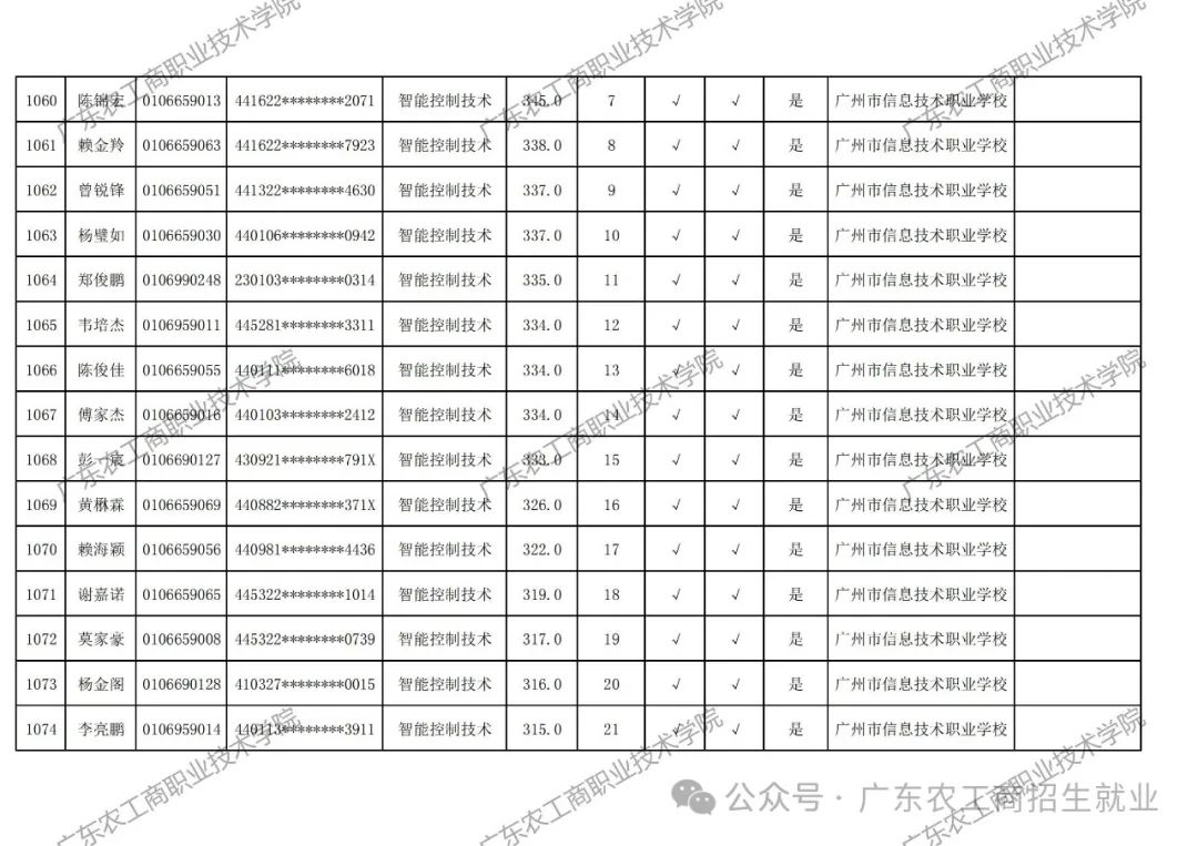 经各中职学校报送材料,各二级学院初审、学校复审,现将复审通过考生名单报送省教育考试院终审,根据相关规定,现将学校复审情况予以公示。公示时间:自2025年2月21日至2025年2月23日止,若有异议请在公示期与我校招生就业处联系,联系电话:020-85230071,联系人:吴老师。