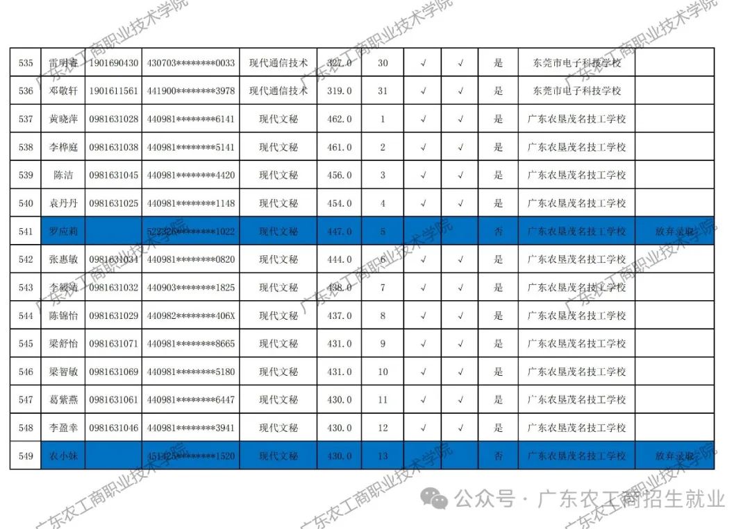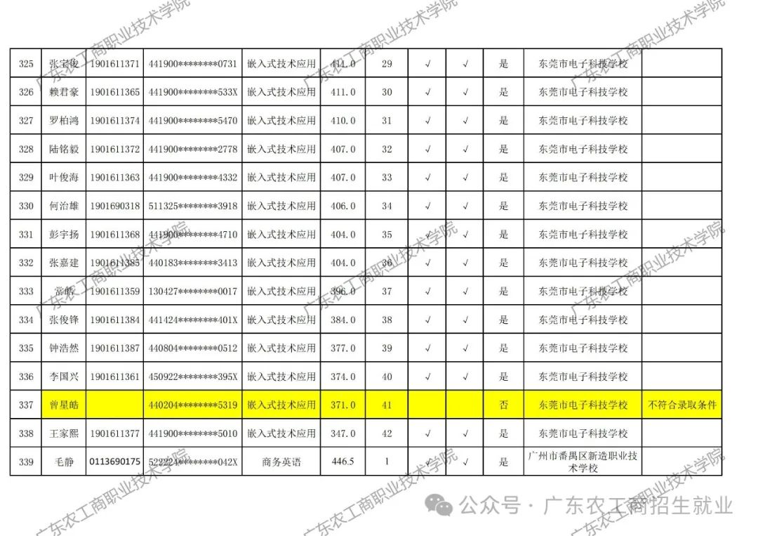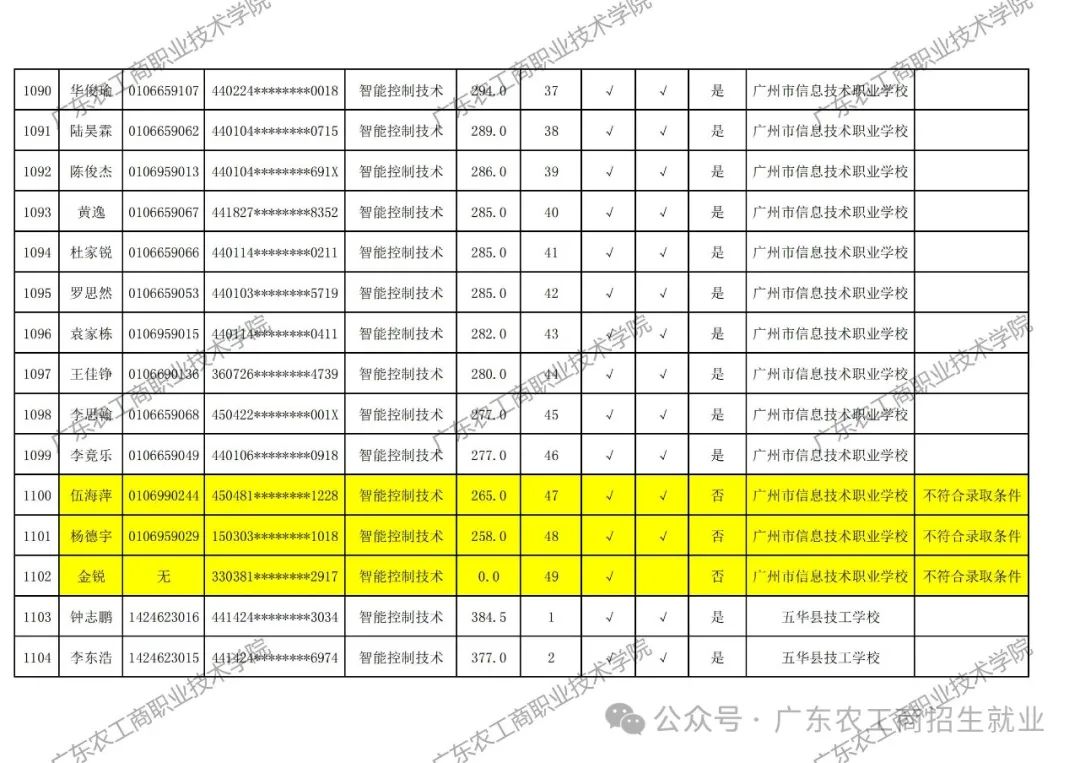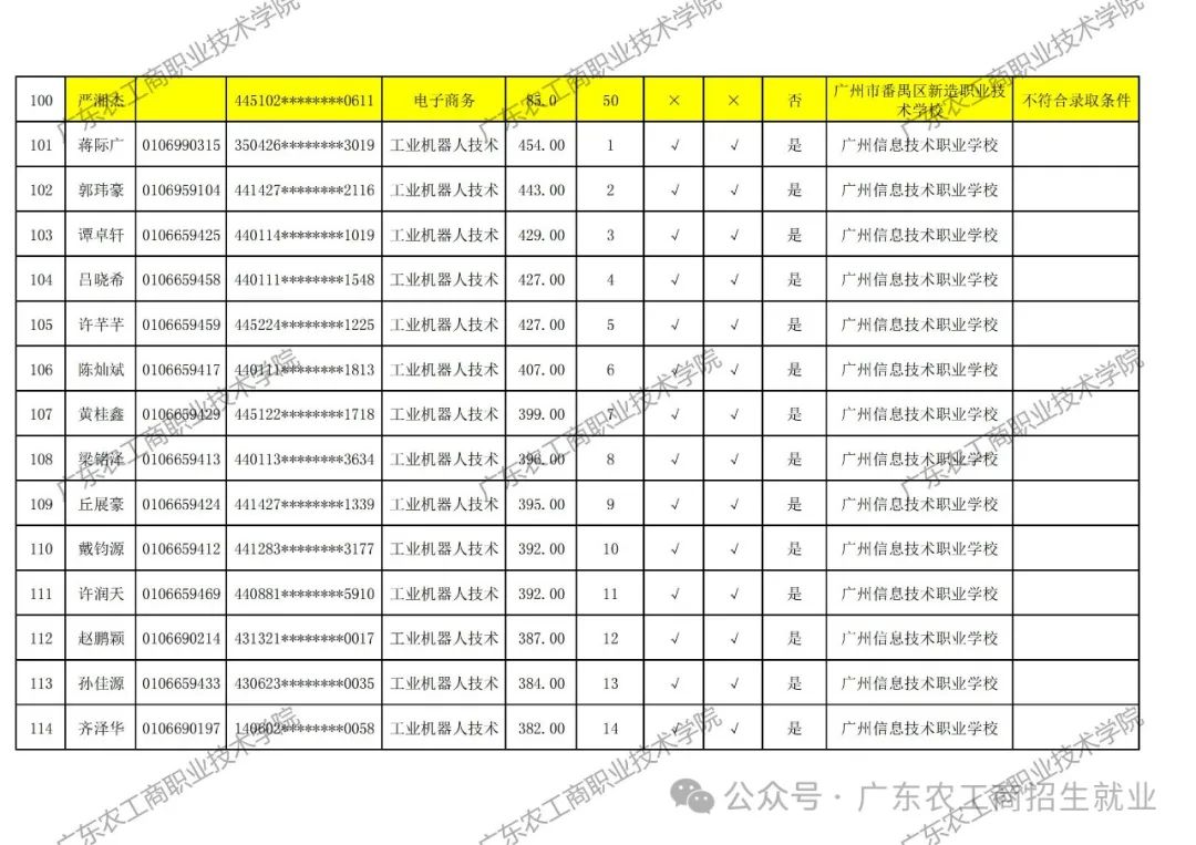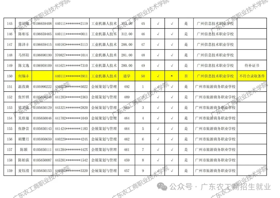 经各中职学校报送材料,各二级学院初审、学校复审,现将复审通过考生名单报送省教育考试院终审,根据相关规定,现将学校复审情况予以公示。公示时间:自2025年2月21日至2025年2月23日止,若有异议请在公示期与我校招生就业处联系,联系电话:020-85230071,联系人:吴老师。