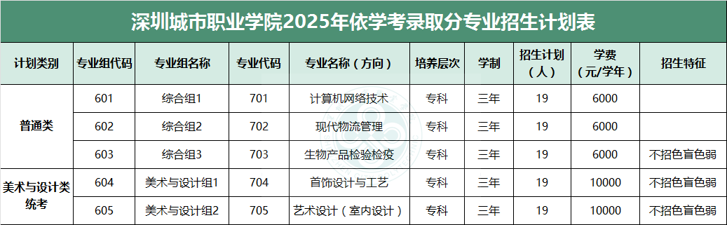 深圳城市职业学院 2025 年首次面向广东省开展春季高考招生(含依学考成绩招生、“3+证书”成绩招生),计划招生470人,其中依学考成绩招生95人,“3+证书”招生375人。学校 2025年春季高考招生共有5个招生专业。