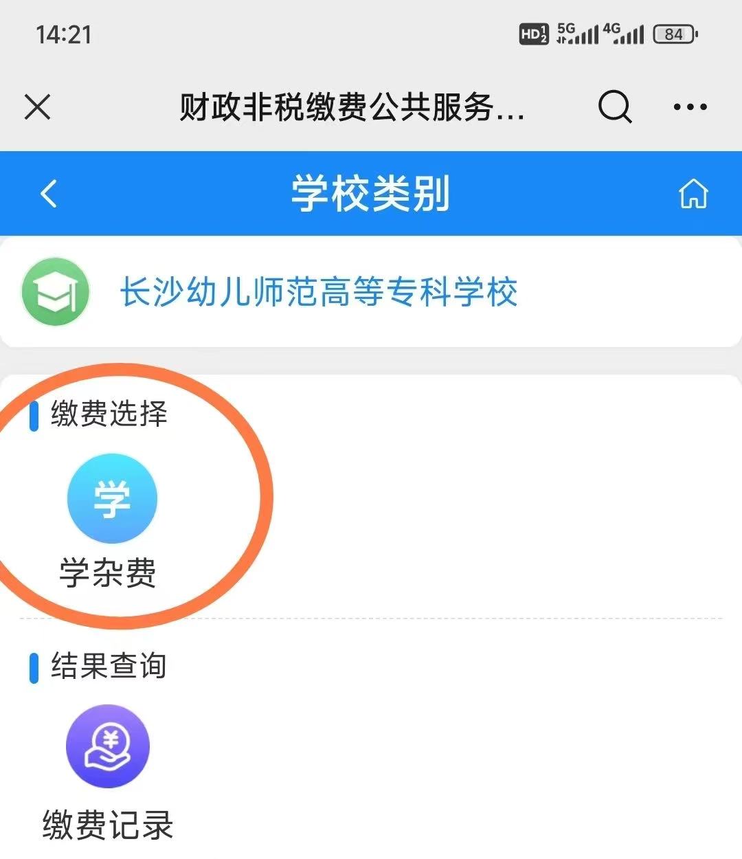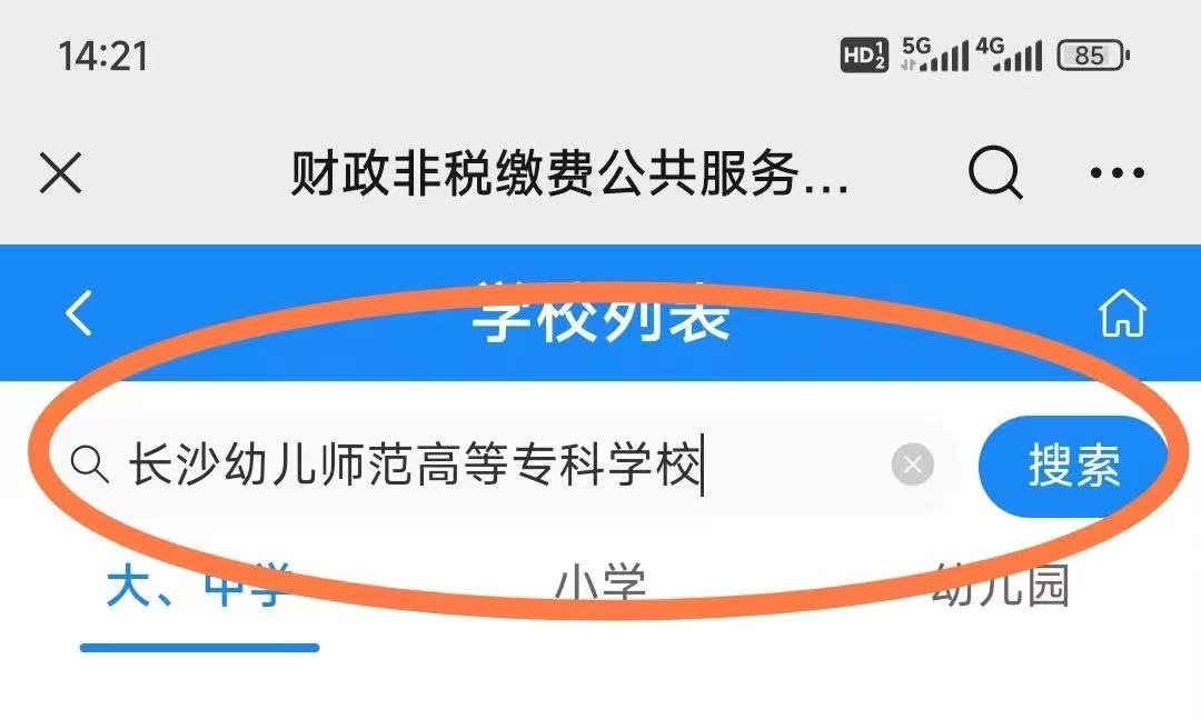 报考我校第一志愿的考生缴费时间为2月28日下午—3月2日,未在规定时间内缴费的视为放弃考试资格,缴费成功后考生未考试或考试无效,报考费不予退还。请通过长沙市财政局的微信服务号“长沙财政服务平台”进行缴费。操作流程为:微信搜索“长沙财政服务平台”,依次点击“政务大厅-非税缴费-长沙市本级-教育缴费-长沙幼儿师范高等专科学校-学杂费-输入个人姓名和身份证-缴费80元”。具体缴费操作流程图示如下。