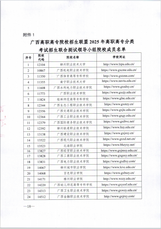 1.广西公办高职高专院校招生联盟2025年广西高职高专分类考试招生联合测试院校成员名单