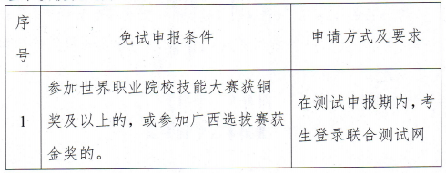 三、高职对口招生的考生在校学习期间获得相关奖项之一的(见第十八条,第一点“对口免试生条件”),可向联盟提出“对口免试生”资格认定申请,审核通过的考生,为“对口免试生”。“对口免试生”仍须参加高职对口联合测试,其职业技能成绩按满分计,文化素质成绩以实测成绩计。
