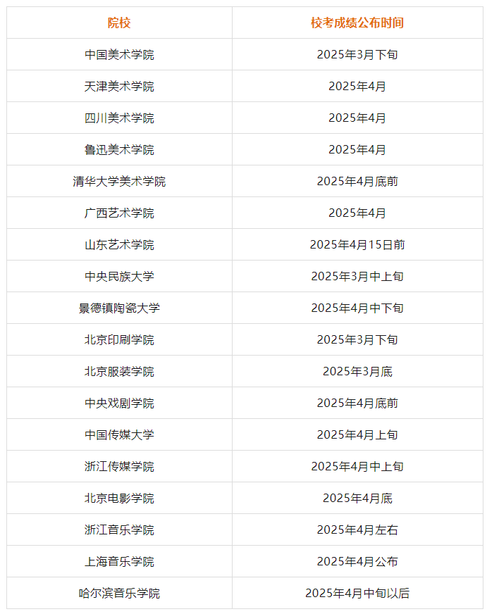 2025年校考复试正在陆续进行中,各位考生和家长目前最关心的问题就是什么时候能够知道校考复试分数,优艺考汇总了部分校考院校的查分时间,有需要的家长和考生可以先点赞、收藏起来哦。