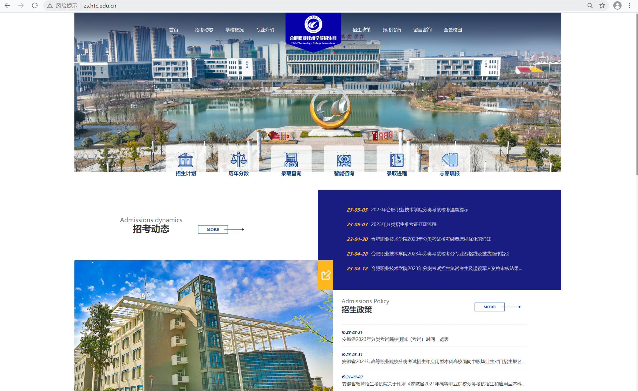 【提醒】:我校分类考试招生信息发布渠道为合肥职业技术学院招生网(zs.htc.edu.cn)和“合肥职业技术学院招生办”微信公众号(微信号:hfzyzsb),其他网站公布的信息均非官方发布,请广大家长和考生仔细鉴别。