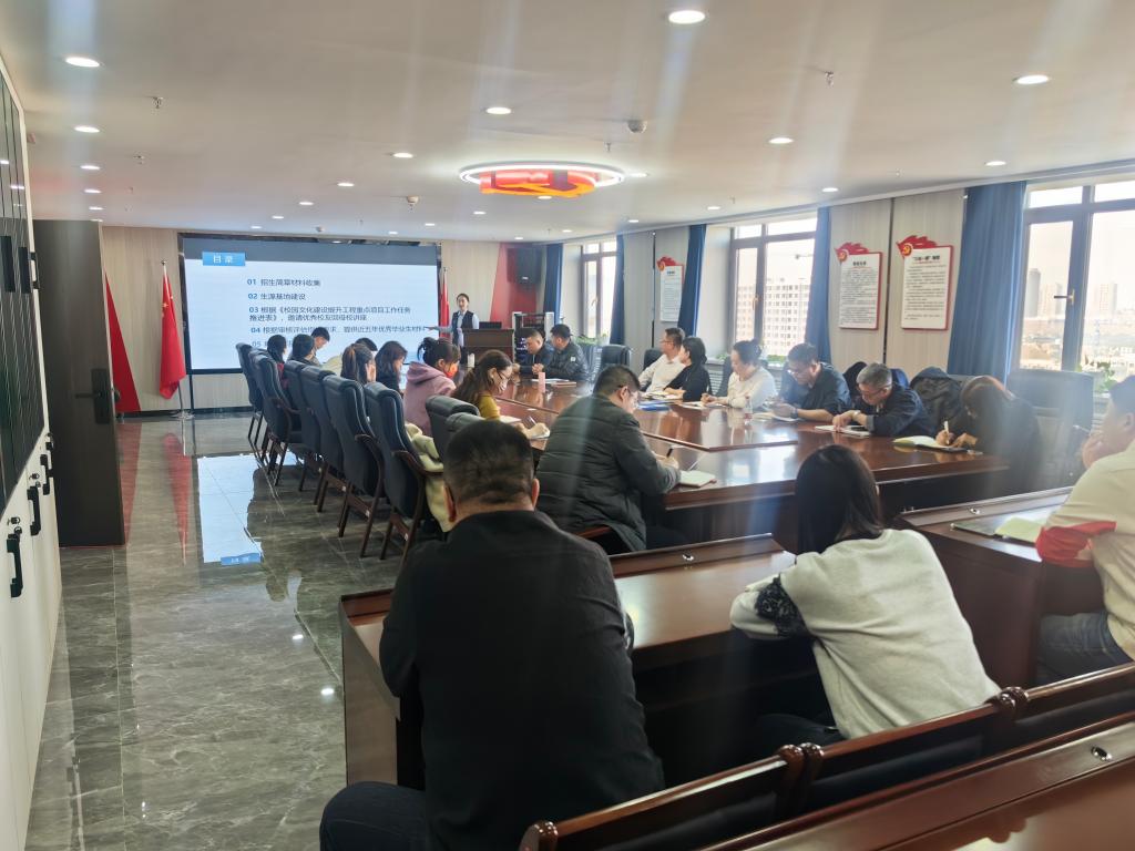 会上,佟宇副校长首先发表了重要讲话。他强调,招生工作是学校发展的生命线,关系到学校的生源质量、办学声誉和长远发展。全校上下要高度重视,统一思想,明确目标,确保招生工作有序推进。他指出,面对日益激烈的生源竞争,各部门要创新招生宣传方式,突出学校特色,吸引更多优质生源报考。