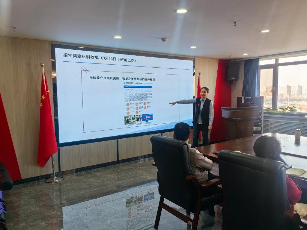 会议由招生与校友联络处处长刘洋主持,并详细介绍了2025年招生工作的总体安排和具体措施。她表示,今年学校将继续优化招生政策,拓宽宣传渠道,充分利用新媒体平台,提升学校的社会影响力。同时,她还对招生宣传材料的准备、生源基地建设等工作进行了具体部署。