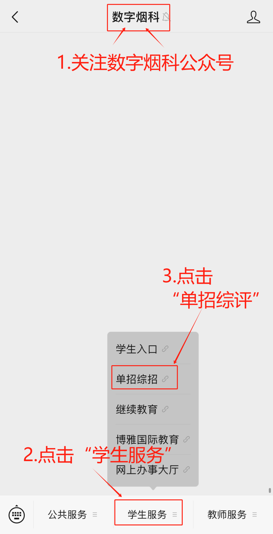 微信关注公众号数字烟科,点击学生服务→单招综评。