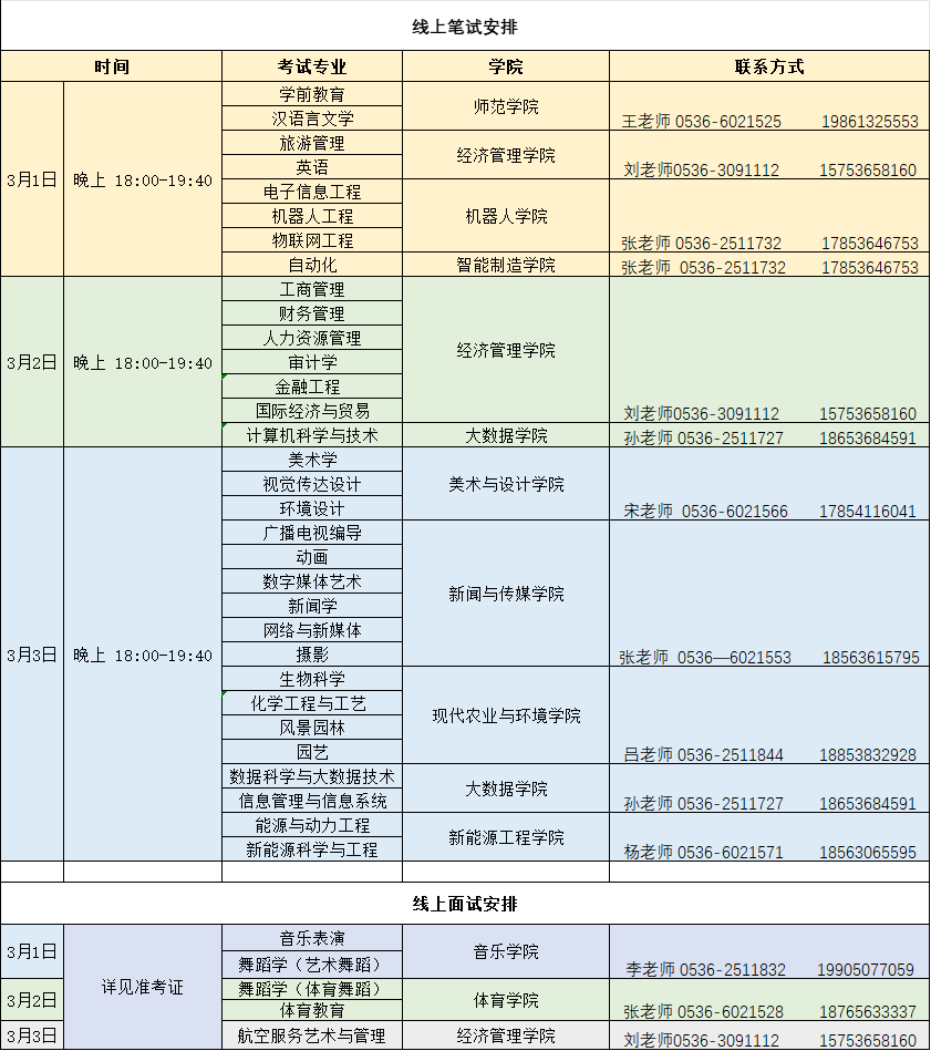 潍坊理工学院2025年专升本自荐考生专业综合能力测试时间安排