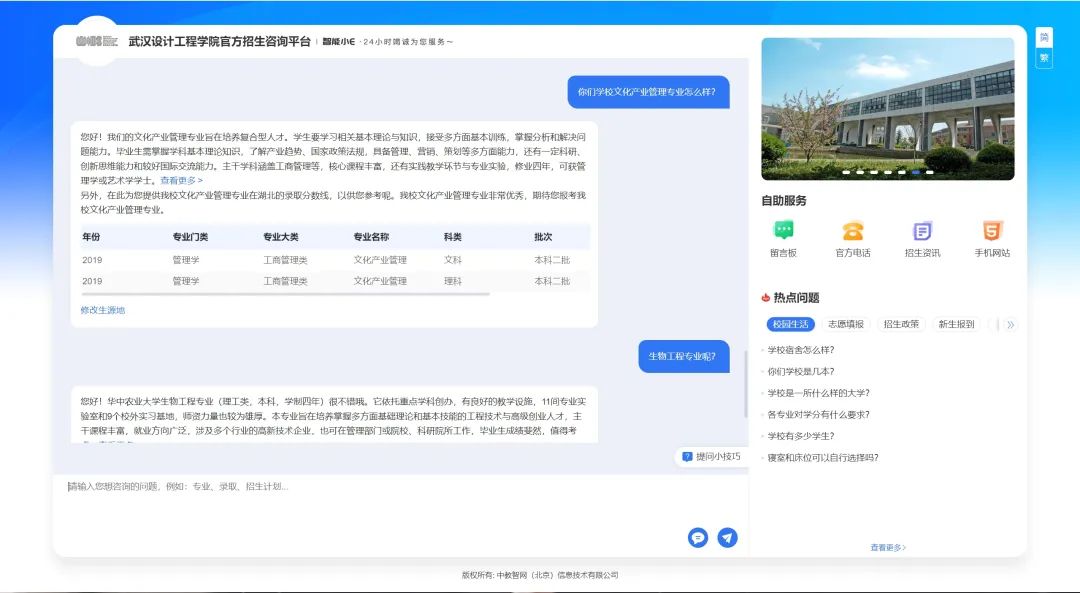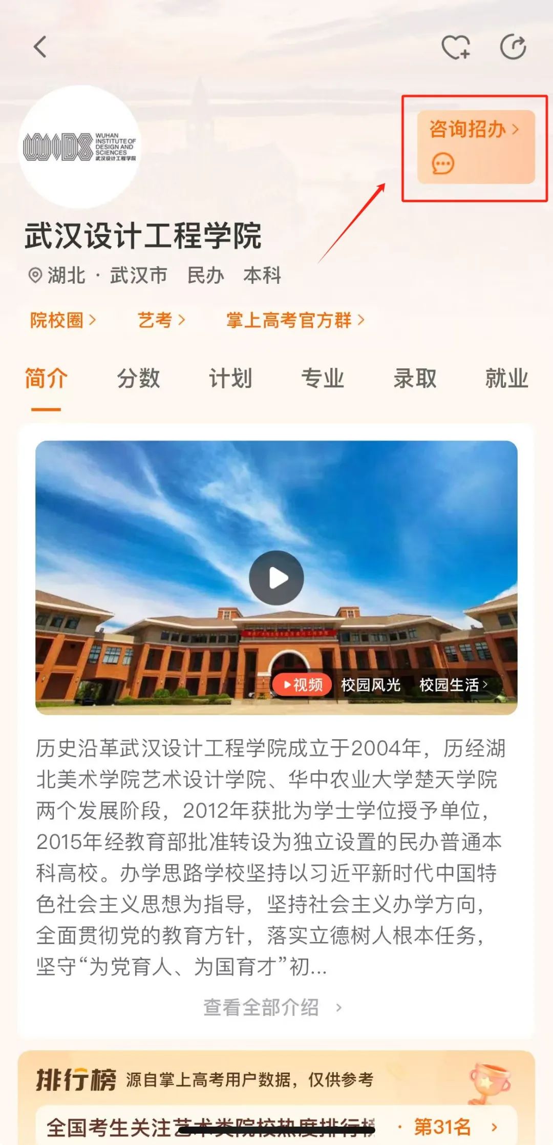 各位学子及家长可通过武汉设计工程学院招生官网和招生微信公众号两种方式进行在线咨询。