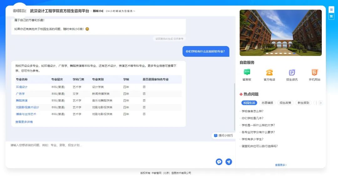 系统基于DeepSeek的强大技术,能精准识别你的提问意图,无论是复杂的志愿填报问题、还是关于校园生活的小疑惑,系统都能快速理解,给出精准答案!