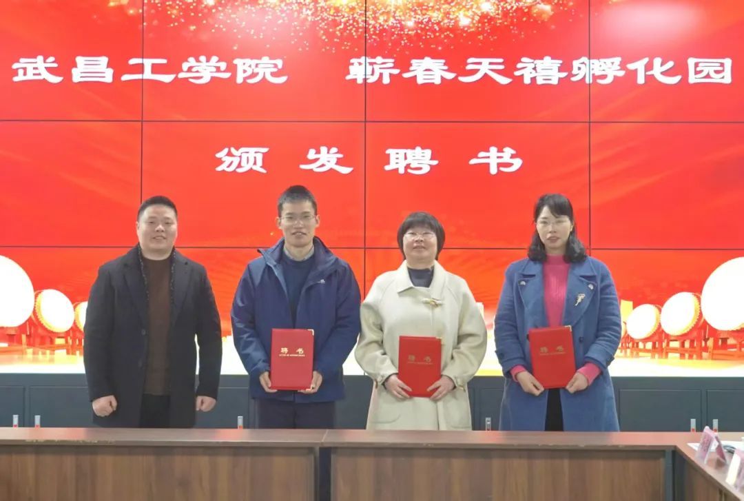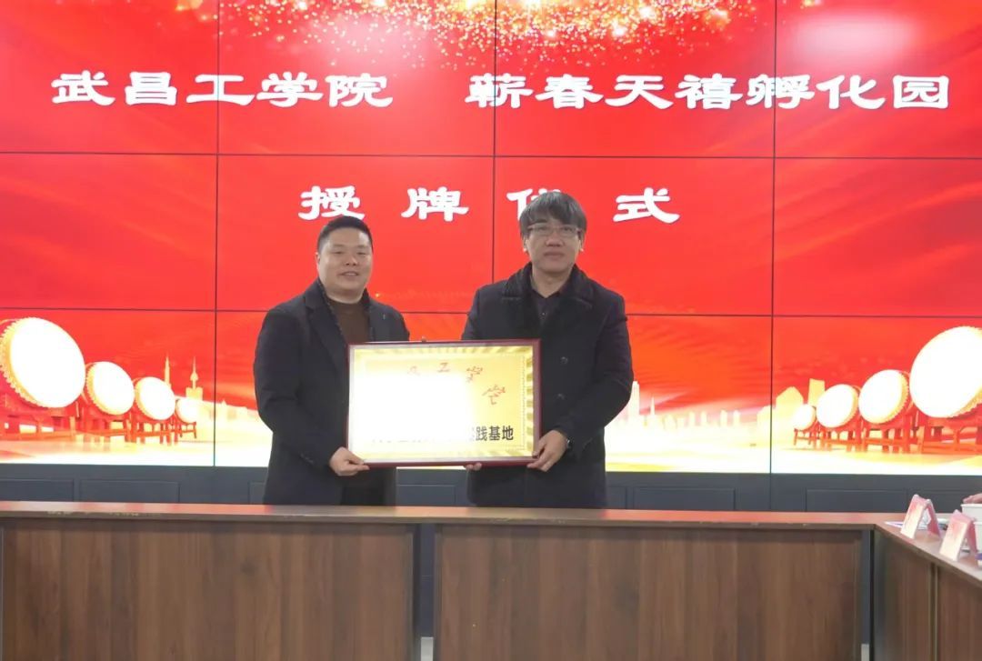 李家伟代表学校授予湖北天禧孵化园“大学生创新创业实践基地”