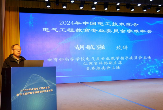 教育部高等学校电气类专业教学指导委员会主任胡敏强教授在致辞中,回顾了第三届全国高校电气类专业青年教师实践教学设计创新大赛的举办历程,说明了各赛道设置目标、要求和内容,并介绍了报名、预赛和决赛情况。他指出,本次竞赛是落实教育部“五金”(金专、金课、金师、金材、金地)建设工程的重要举措,旨在通过竞赛,进一步推进各校一流课程、一流专业建设,提高青年教师的实际动手能力、课程项目教学设计能力、新技术综合应用能力和创新创造能力。