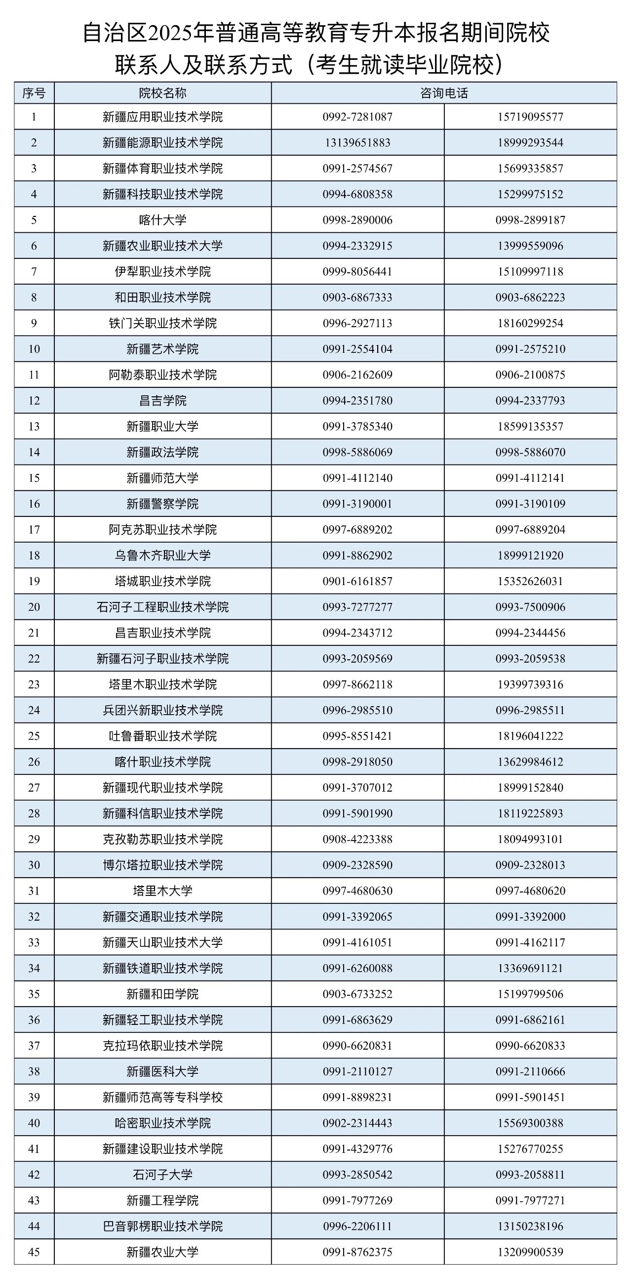 普通专升本报名分为网上报名、缴费确认两个阶段,报名对象、报考条件、资格审核等有关规定按照自治区教育厅《关于做好2025年自治区普通高等教育专升本考试招生工作的通知》执行(详情见新疆维吾尔自治区教育厅官方网站jyt.xinjiang.gov.cn)。
