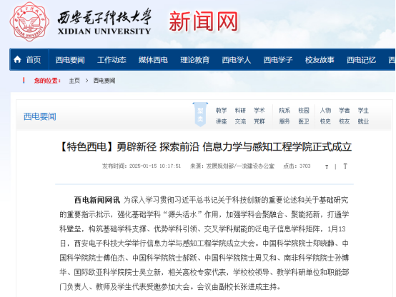 随着新一轮科技革命和产业变革的持续深化,众多前沿领域展现出高度的交叉融合趋势。在此背景下,西安电子科技大学成立的信息力学与感知工程学院应运而生,致力于通过整合不同学科的优势资源,引入前沿的研究方法和技术手段,全面提升科研创新能力。