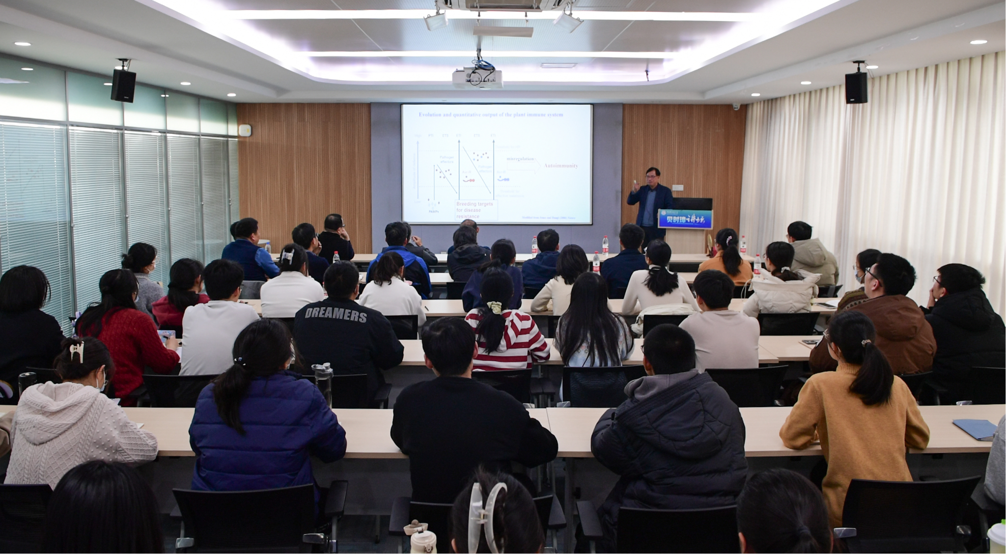 何祖华长期致力于植物抗病和免疫调控机制的研究,尤其以粮食作物水稻为主要研究对象,专注于高抗高产耦合的作物育种资源创造。在此次报告中,何祖华深入浅出地阐述了其团队在水稻抗病机制方面的突破性进展:揭示了水稻中新的钙离子感受器ROD1如何精细调控水稻免疫,降低因广谱抗病而带来的生存代价,并巧妙平衡水稻抗病与生殖生长及产量之间的关系。这一发现不仅成功解析了水稻广谱抗病机制,更为作物抗病育种建立了全新的理论与技术体系,在国际上取得了领先地位。