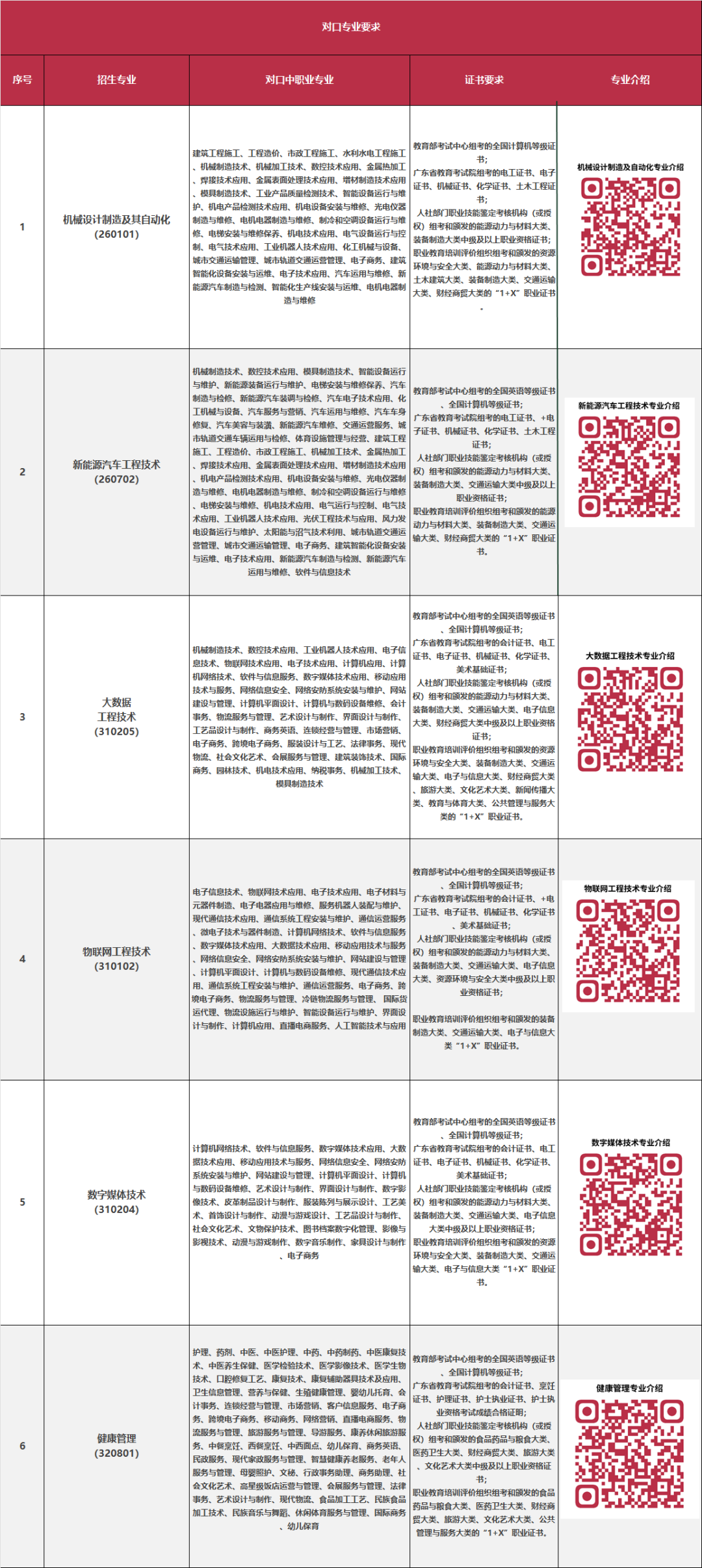 对口中职专业和证书要求
