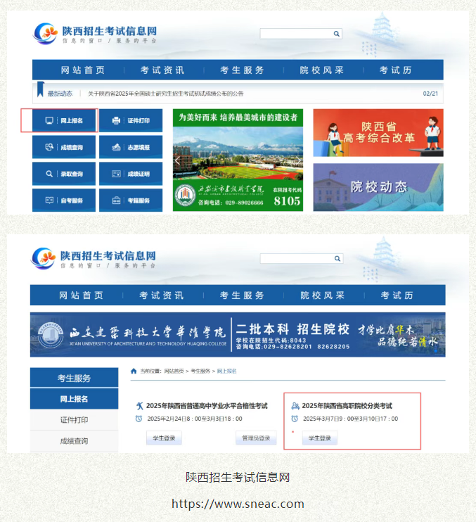 (网址:https://www.sneea.cn)或陕西招生考试信息网(网址:https://www.sneac.com)依据本人意愿向我校提出入学申请。