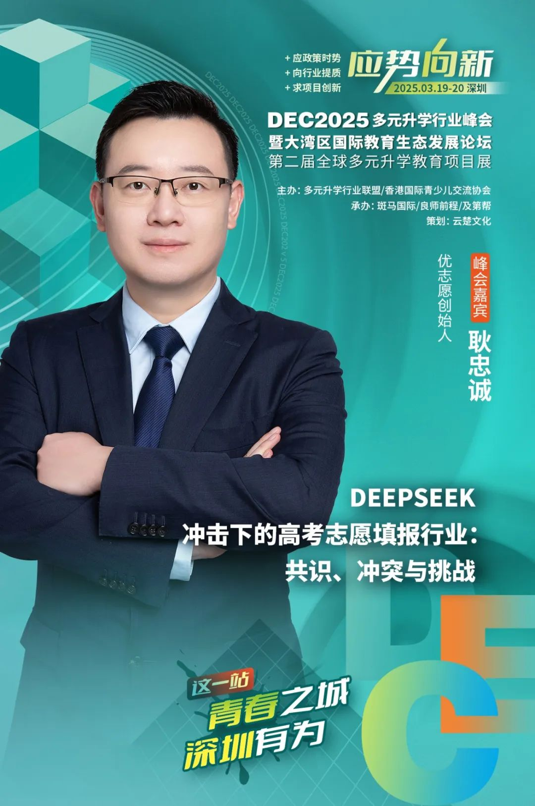 DEC2025多元升学行业峰会将于2025年3月19日至20日在深圳盛大启幕,此次峰会以“应势·向新”为主题,深度聚焦升学规划行业的当前趋势与未来展望,旨在携手业界同仁共同探索多元化的升学规划新路径。