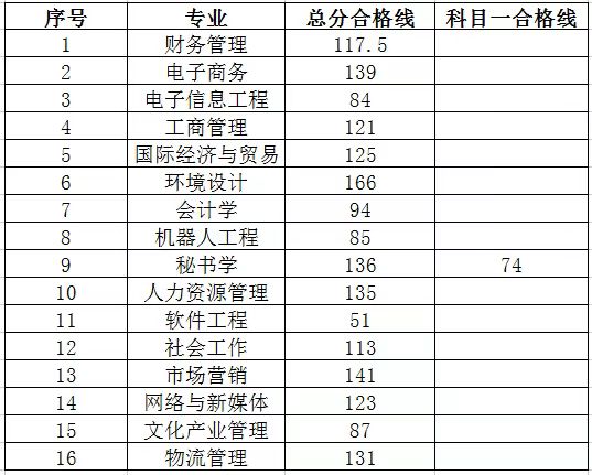 二、各专业合格线: