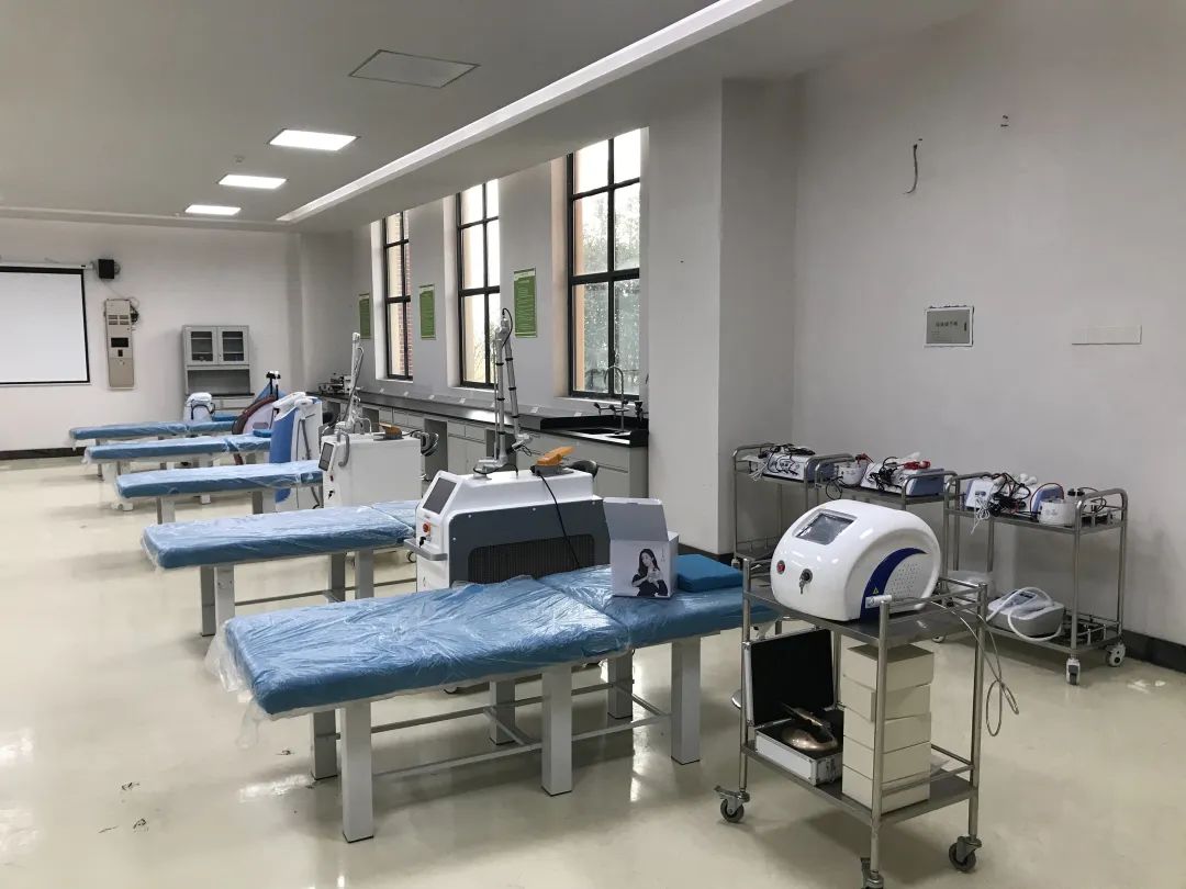 本专业注重实训室的高起点、高标准和规范化建设,校内实训室占地面积达800平方米,实训设备价值200余万元。包括皮肤美容实训室、外科美容实训室、医疗美容治疗室、美容美体实训室、中医美容实训室等,配有肌肤检测仪、调Q激光仪、脱毛激光仪、离子束瘢痕治疗仪、光子嫩肤美容仪、热拉提、注氧仪、小气泡、水光针、细胞活化仪、眼部磁疗振动仪、纹眉机等齐全的技能教学设备。本专业与四川西婵医疗美容医院、成都艺星医疗美容医院、成都军大整形外科医院、美之露美容、名伽美业、悦美名娇等近20家大型连锁美业集团等机构建立紧密合作关系,开展师资交流、学生顶岗实习和就业合作。