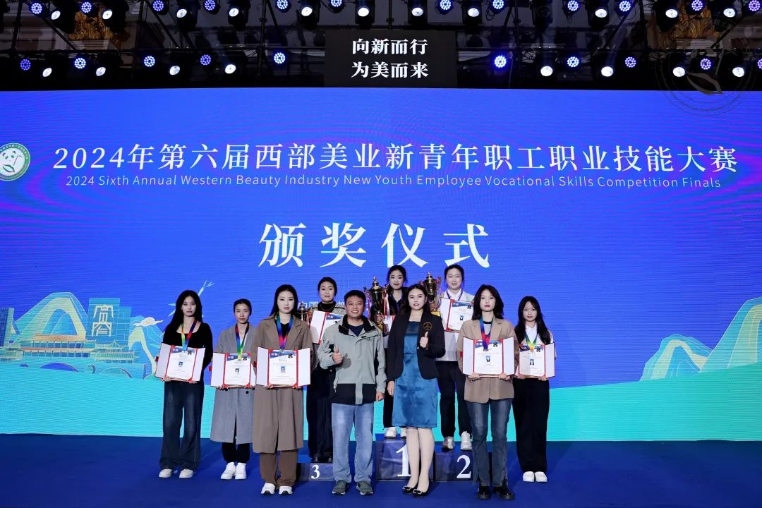 基于“课证融通、课岗融通、课赛融通”、“以赛促教、以赛促学”等基本的职业教育方法和手段,结合医美专业教学特点和人才培养需要,本专业将多项目、多层次的技能赛事融入专业建设和发展的全程,每年面对毕业生开展一次校级医美技能大赛,实行全员参与,同步作为实习前技能考核手段。专业教师参与建立专业技能赛事梯队,指导学生训练和比赛,遴选和培养参加省级、国家级比赛学生。2024年度,本专业师生斩获国家级赛事奖项7项、省级赛事奖项30项。