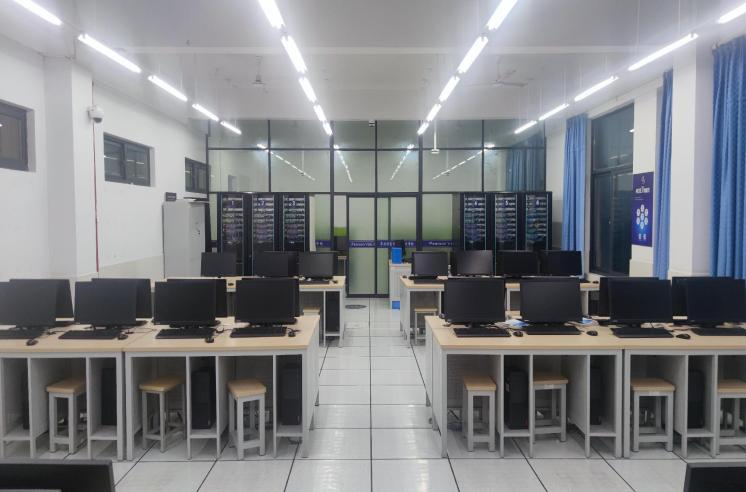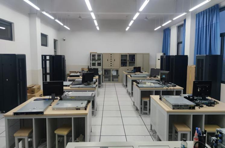 数据存储与云计算实训室,位于信通楼A411,占地103平方米,由浙邮和联想云教育集团于2022年合作建设;实训室源于联想“双态数据中心”建设方案,包括基础设施物理环境、基础设施系统环境、实训环境、课程资源四大模块。现为专业基础课程核心机房,可开展《虚拟化技术基础》《数据中心自动化运维》等课程授课。