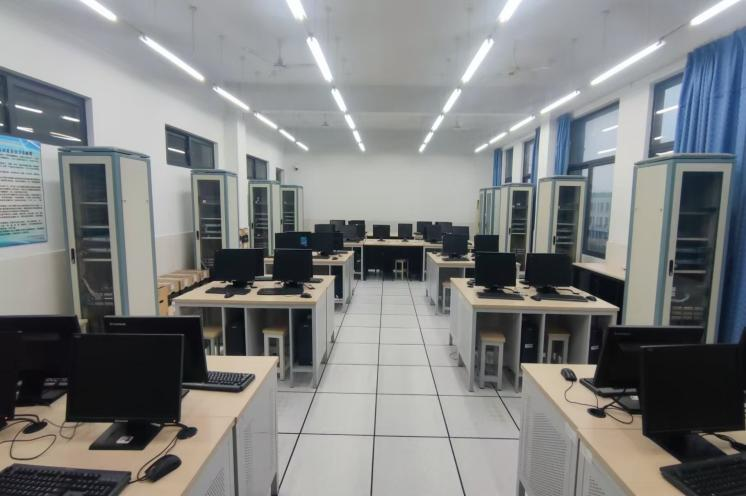 云电脑实训室,占地152平方米,配备有80台新购行业标准云电脑,可同时满足80名学生和培训学员授课;通过终端连接登录微模块数据中心机房的天翼云云电脑平台分配到VPC虚拟化云电脑,可在云端开展《云服务产品配置》《运营维护分析》等实操课程,满足日常授课和实训需求。
