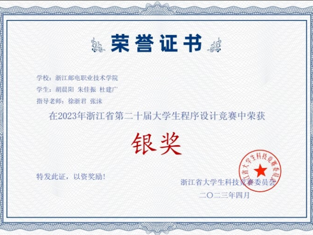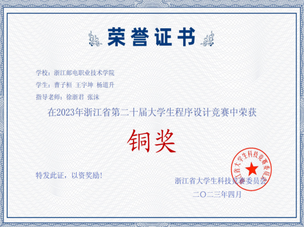 12)2023年浙江省第二十届“图森未来杯”大学生程序设计竞赛二等奖